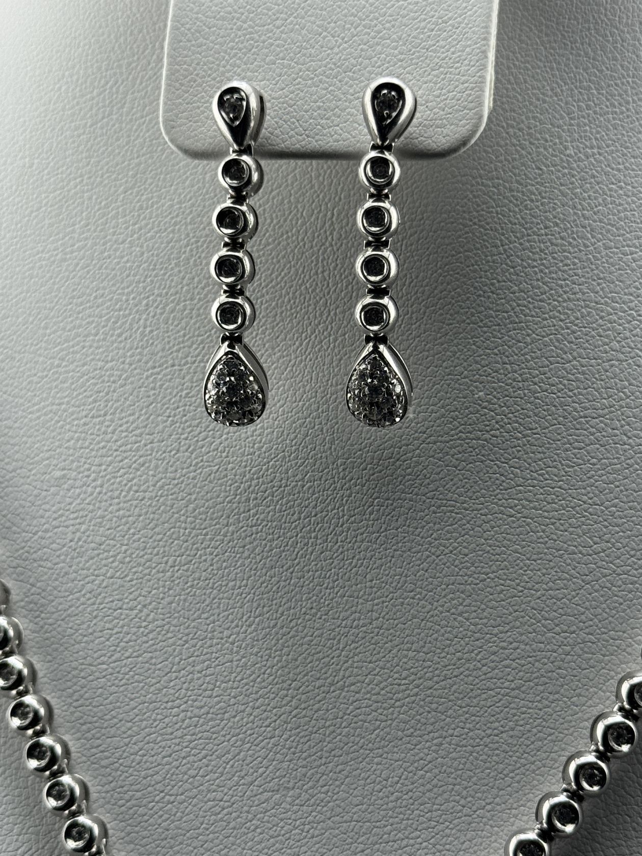 Комплект «Колье и серьги» Damiani из золота 750 пробы. Элегантный набор весом 39,8 грамма, инкрустированный сверкающими бриллиантами.