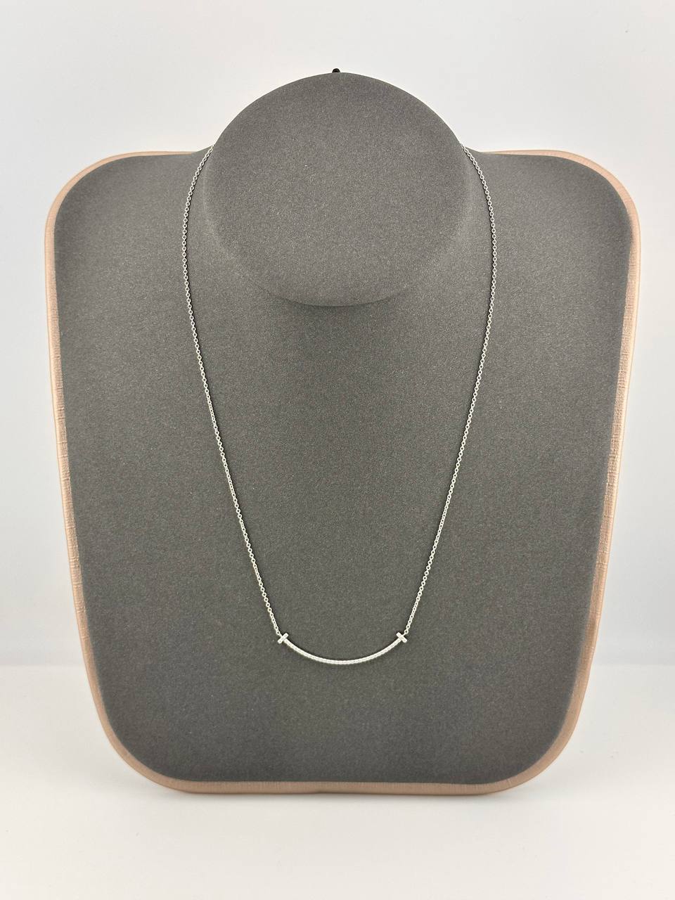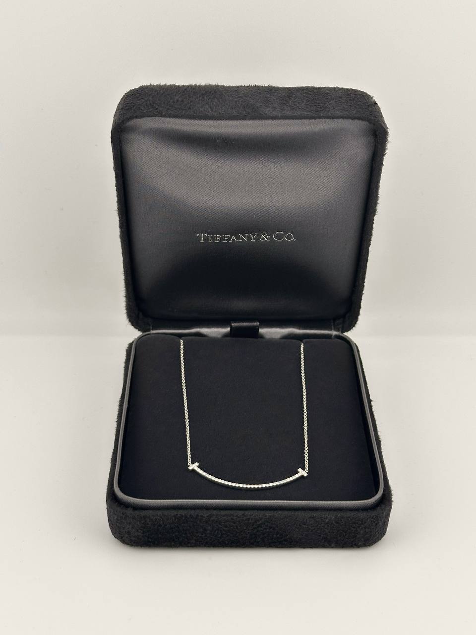 Элегантное колье Tiffany&Co из золота 750 пробы, инкрустированное сияющими бриллиантами. Вес 2,2 грамма.