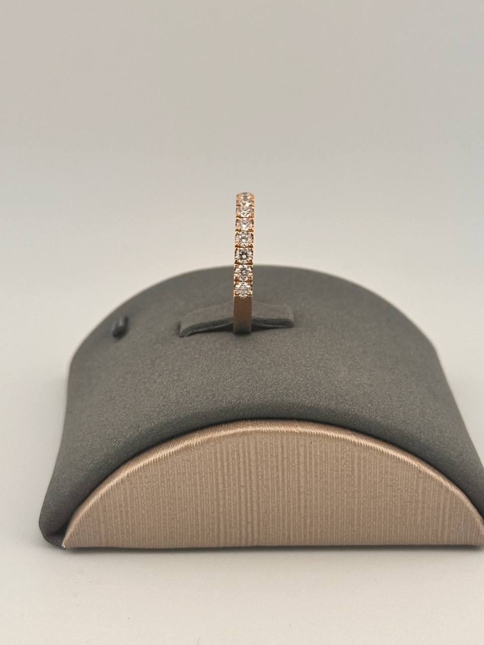 Изысканное кольцо-дорожка из золота 750 пробы, инкрустированное 17 сверкающими бриллиантами общим весом 0,7 карата. Элегантное украшение весом 4,57 грамма.