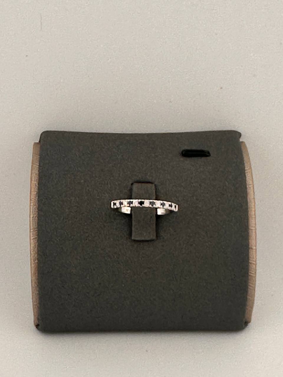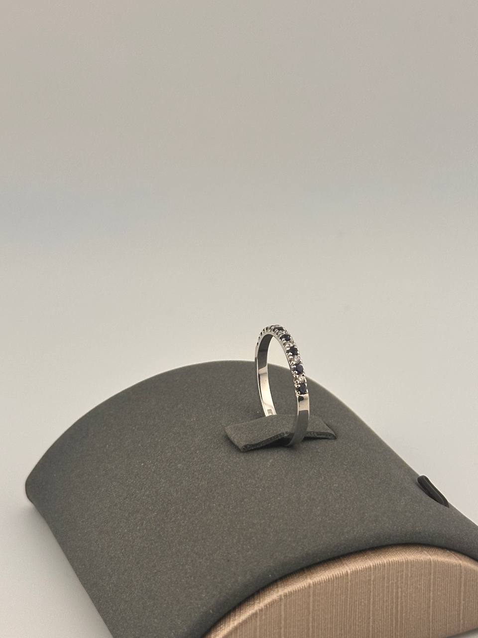 Элегантное кольцо-дорожка из золота 750 пробы, инкрустированное сверкающими сапфирами. Вес 2,29 грамма.