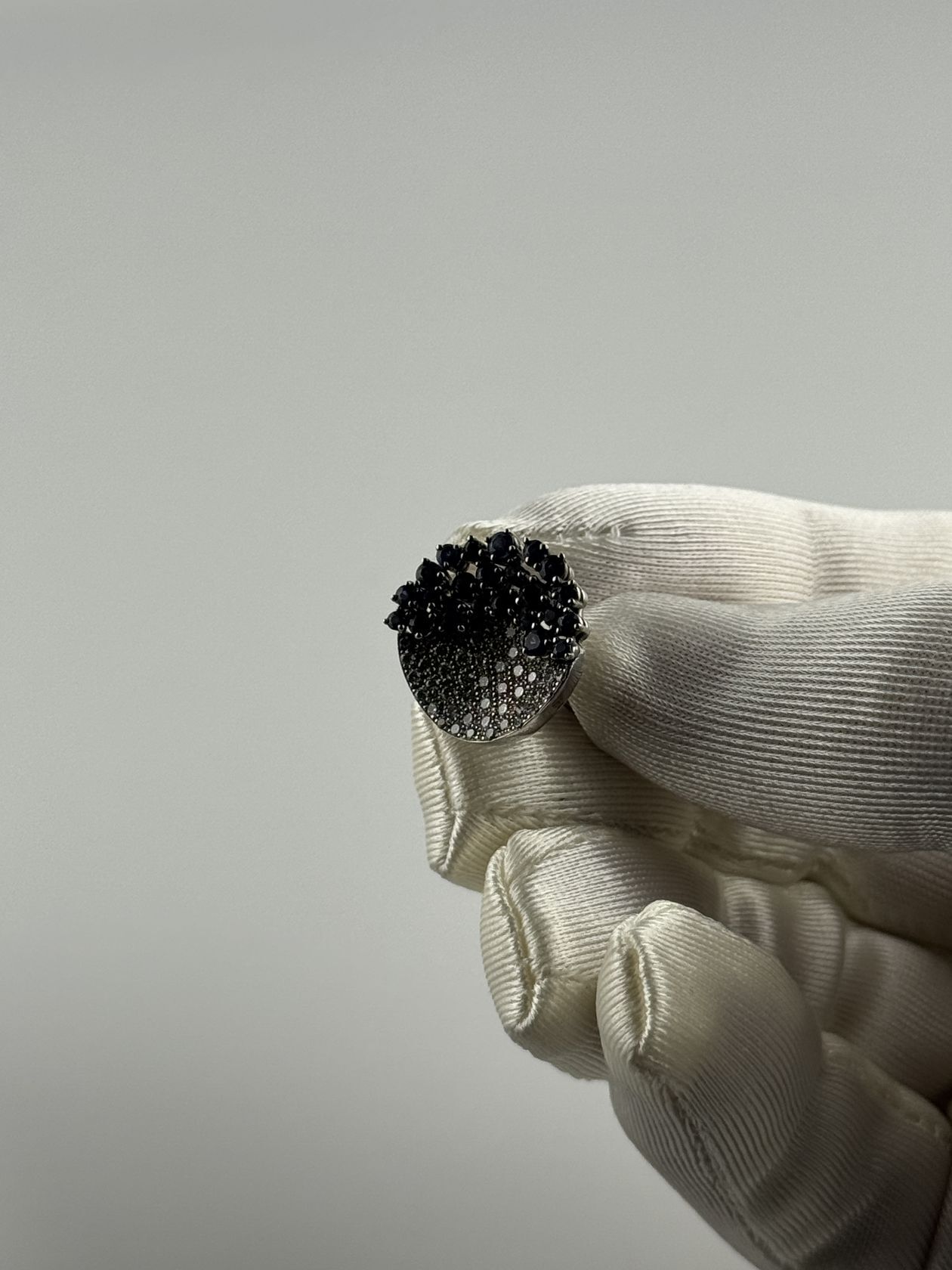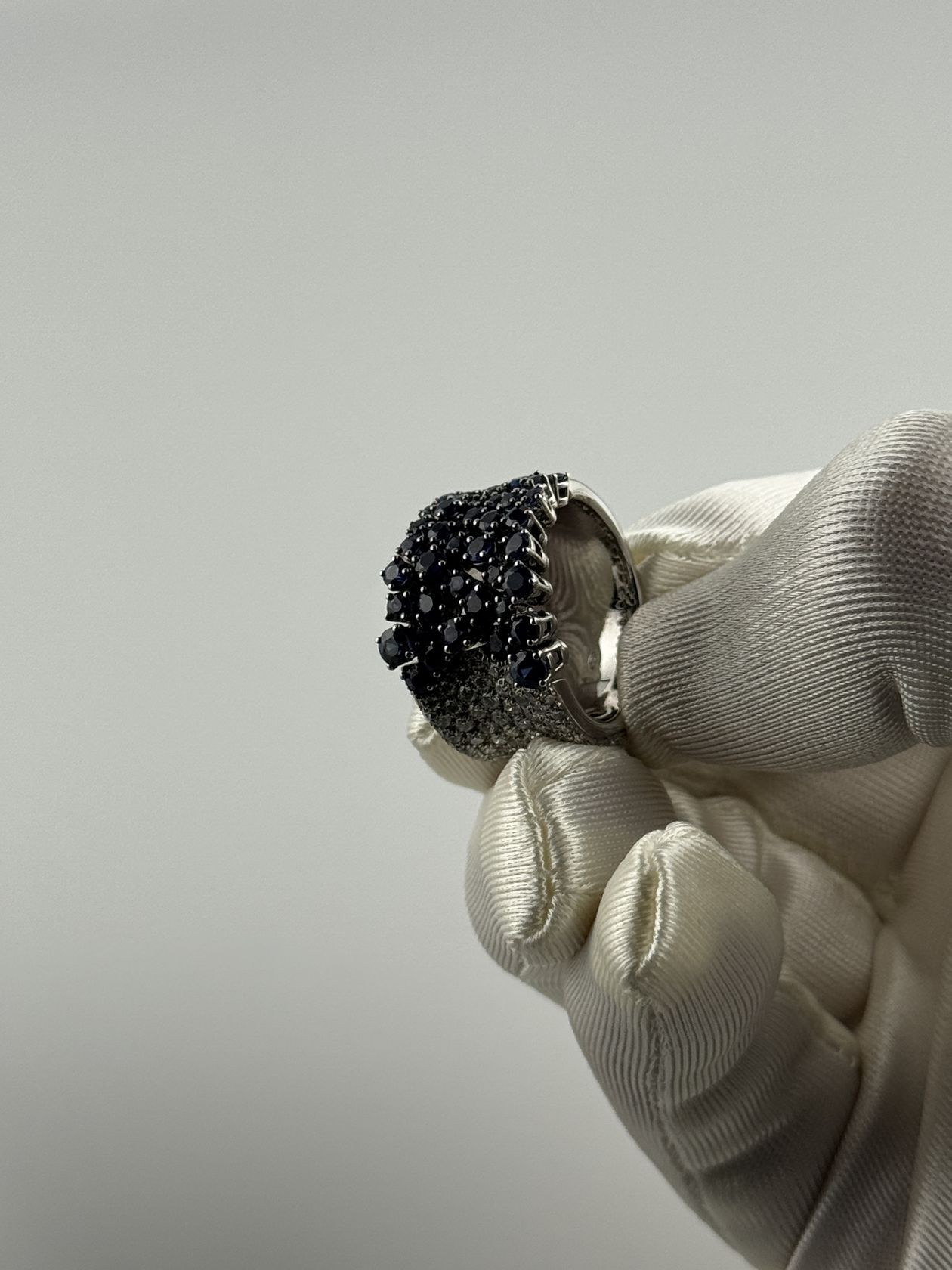 Элегантный комплект Chimento из кольца и серег, выполненный из золота 750 пробы. Инкрустирован бриллиантами и сапфирами. Общий вес 27,85 грамма.