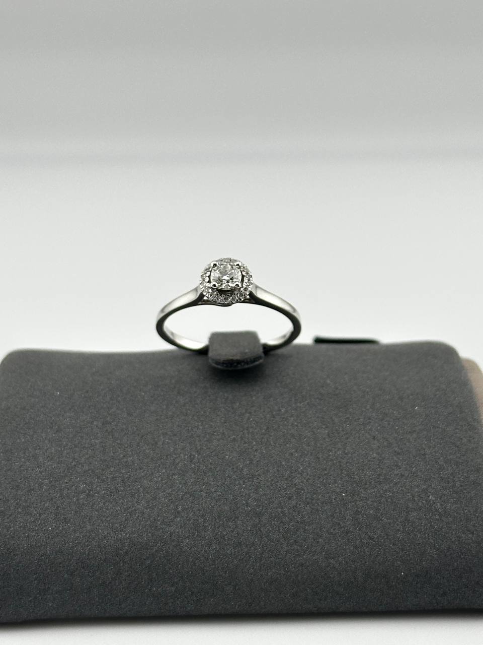 Изысканное кольцо из золота 750 пробы, инкрустированное сверкающим бриллиантом 0,22 карата. Вес изделия 2,41 грамма.
