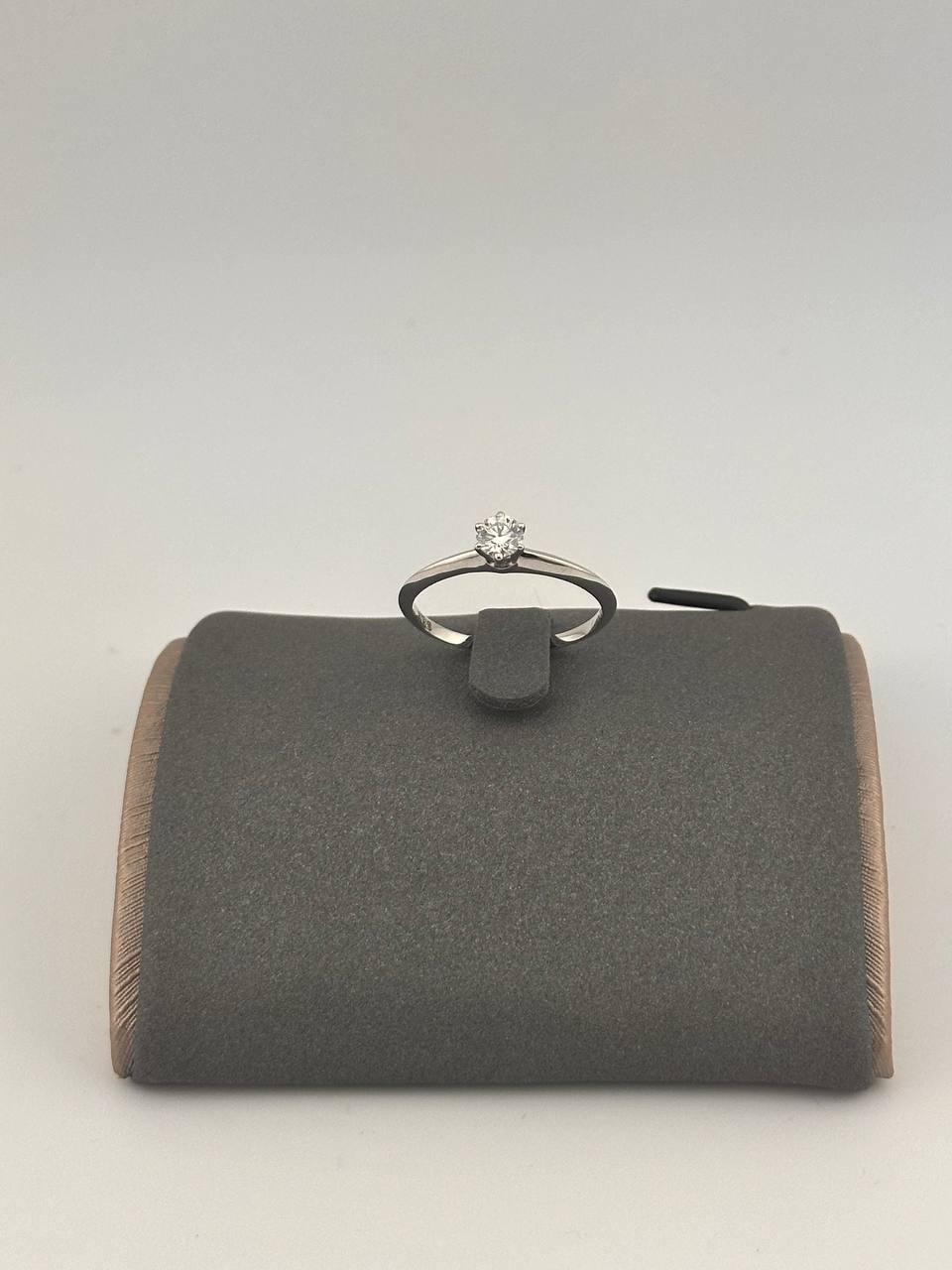 Изысканное кольцо из золота 750 пробы, украшенное сияющим бриллиантом 0,3 карата (VVS2-E). Вес изделия: 1,81 грамма.
