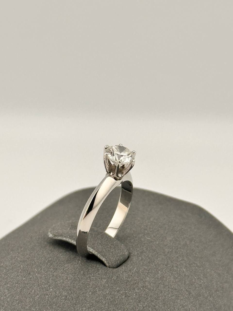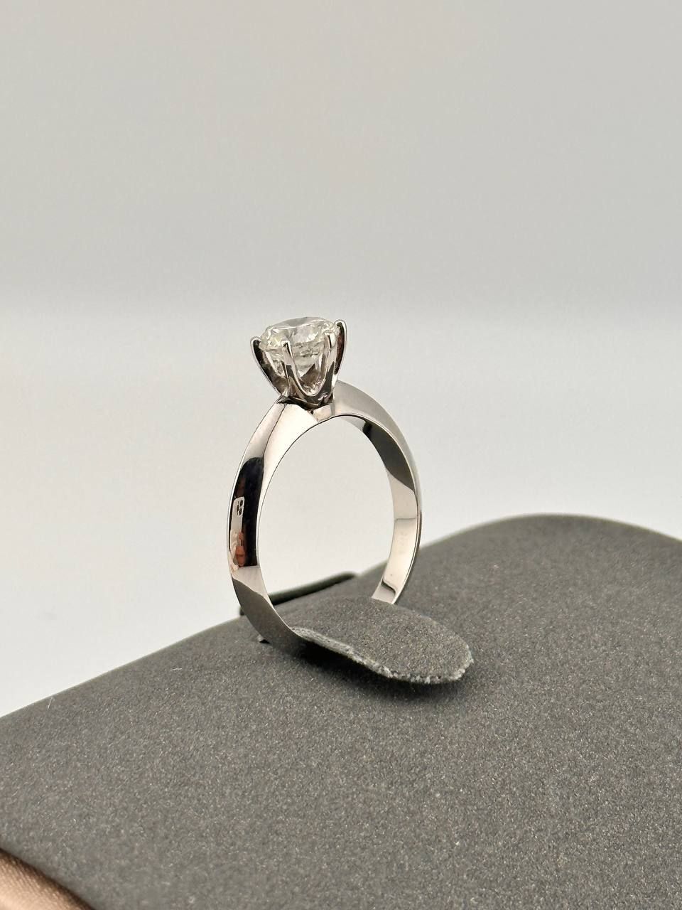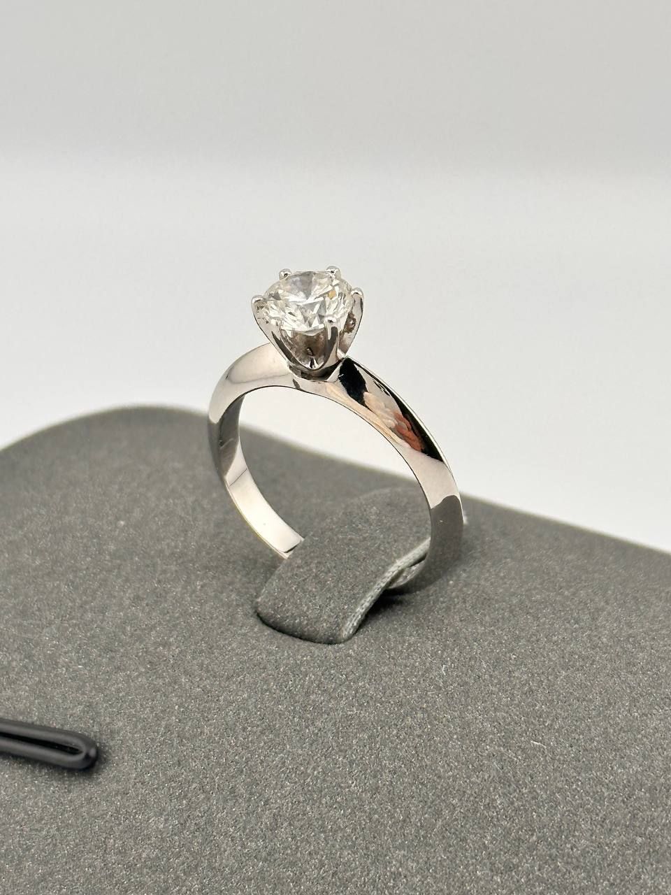Кольцо из золота 585 пробы, украшенное крупным бриллиантом 0,83 карата (цвет I, чистота VS1). Элегантный выбор для особого случая. Вес: 2,87 грамма.