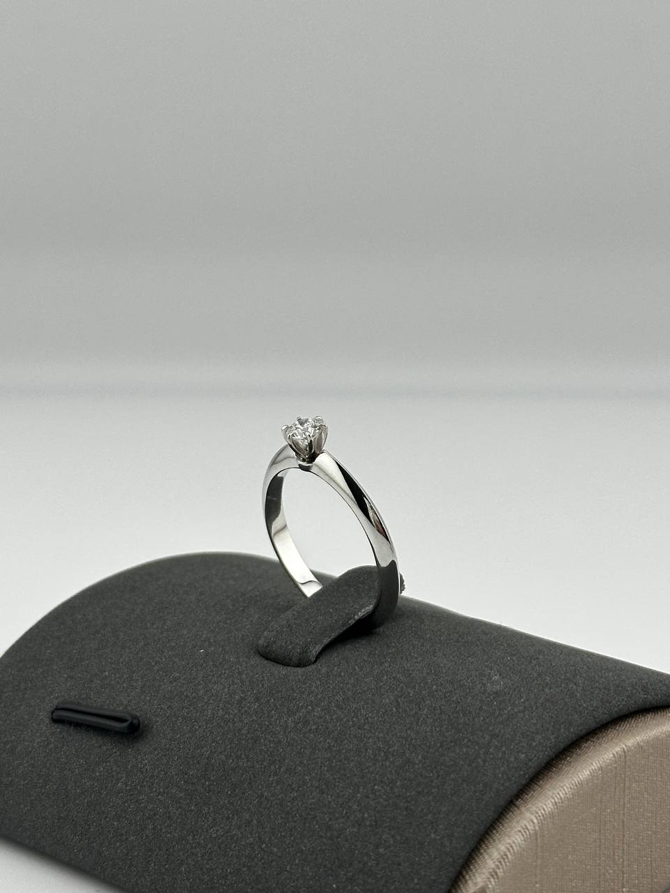 Элегантное кольцо из золота 750 пробы с бриллиантом 0,25 карата (характеристики F/VS2). Вес изделия 3,29 грамма.