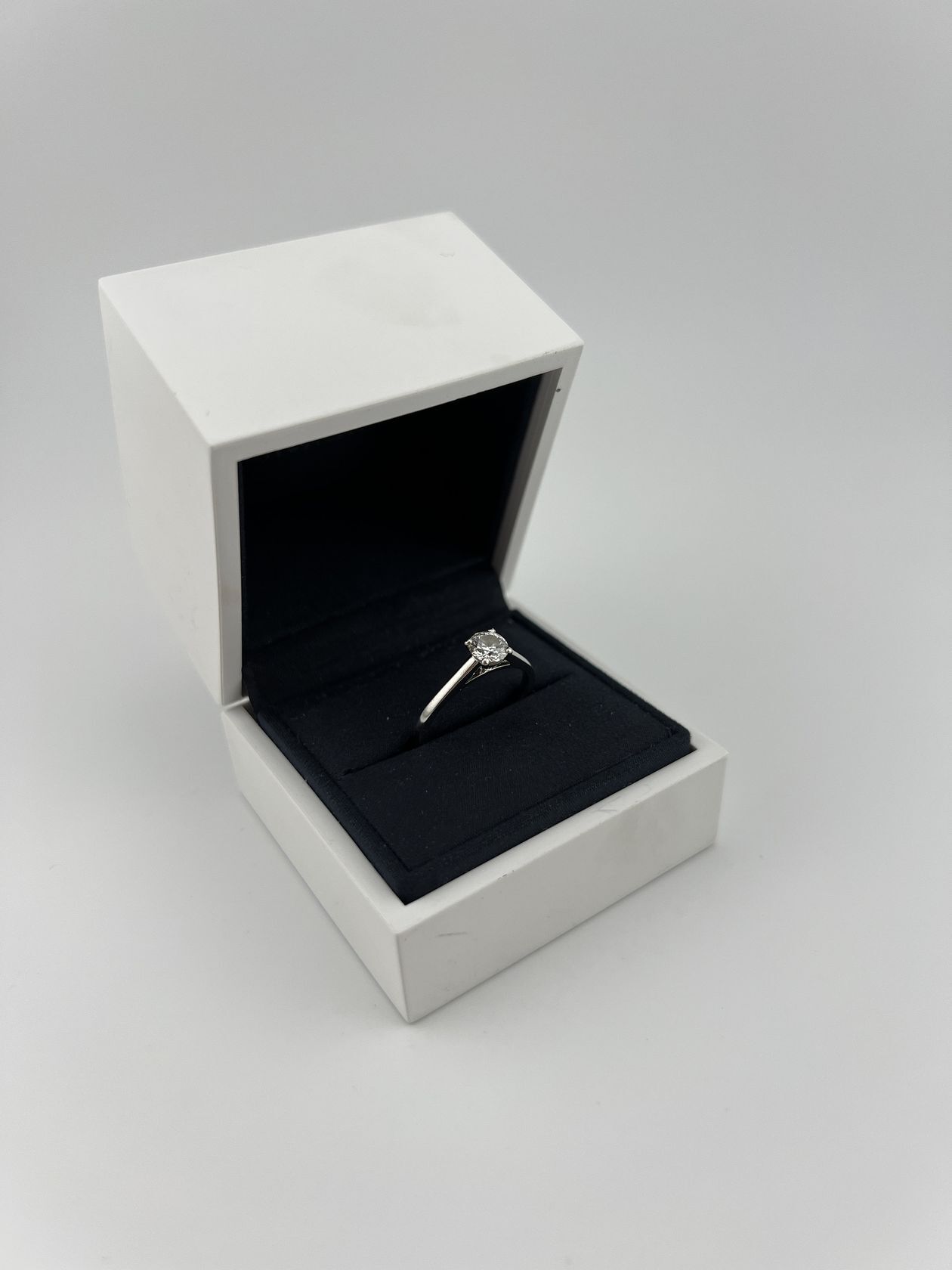 Изысканное кольцо De Beers из платины 950 пробы с бриллиантом 0,53 карата. Вес изделия 3,46 грамма.