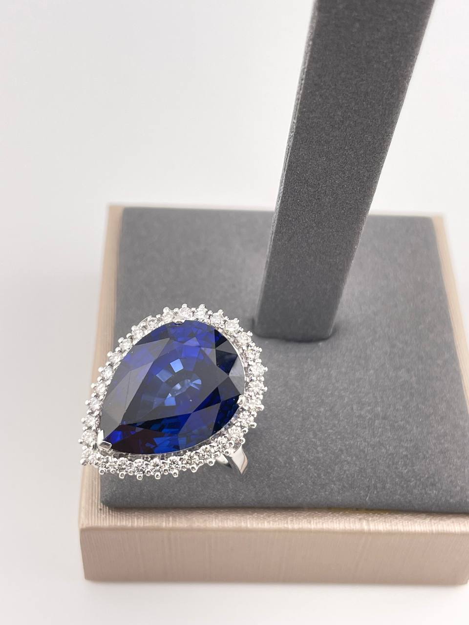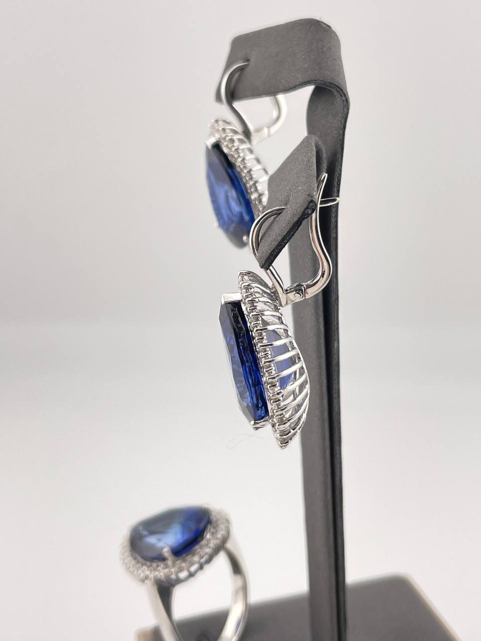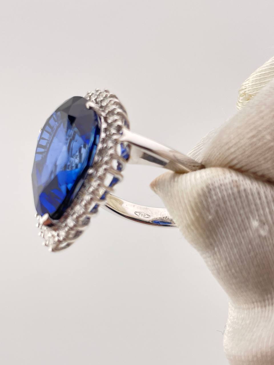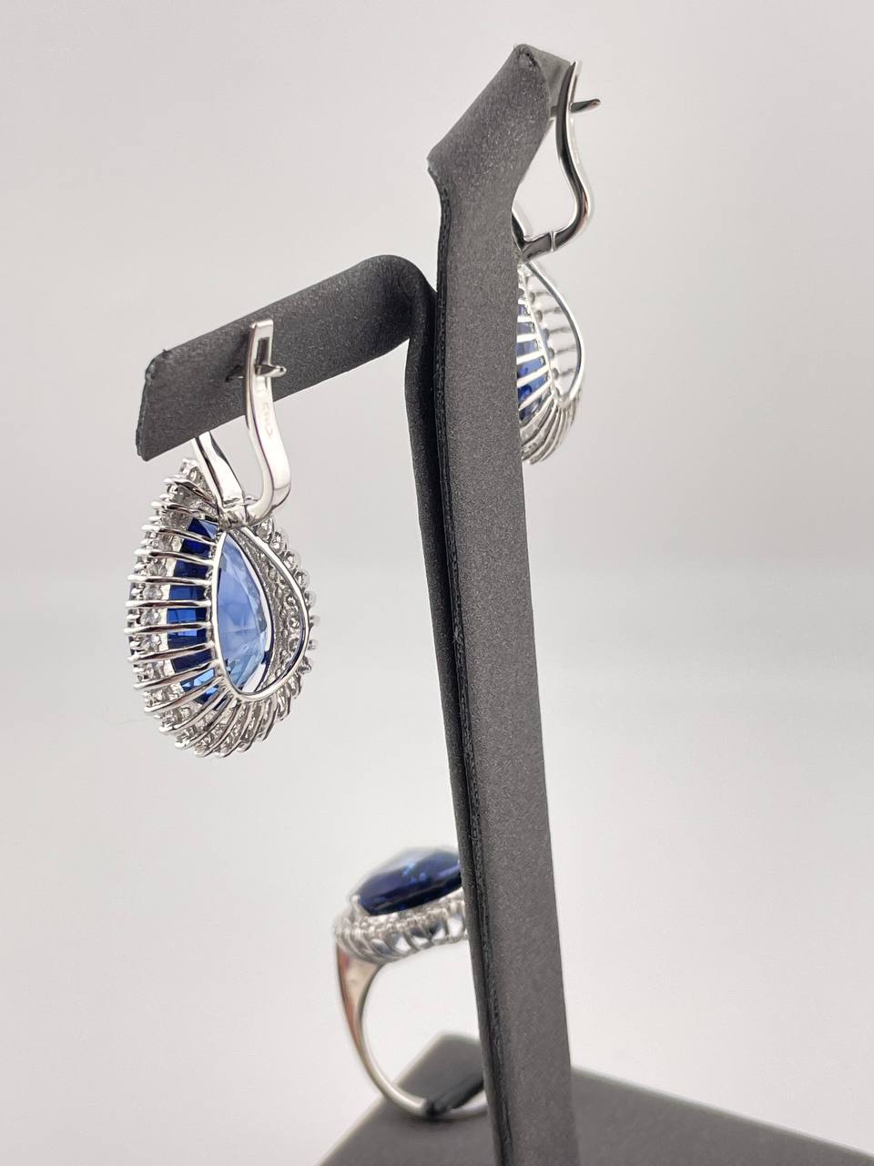 Роскошный комплект «Кольцо и серьги» из золота 750 пробы с яркими корундами. Общий вес 25,3 грамма.