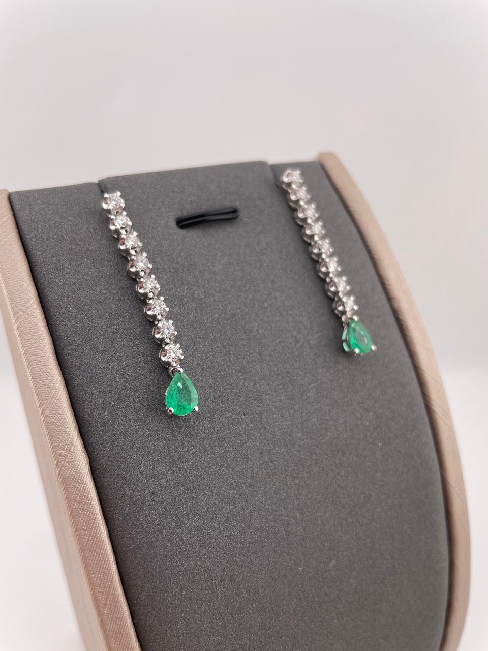 Элегантные золотые серьги 750 пробы с крупным изумрудом (1,33 карата) и сверкающими бриллиантами (0,80 карата). Вес 6,56 грамма.