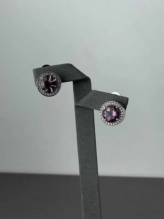 Роскошные золотые серьги 585 пробы, инкрустированные сверкающими бриллиантами. Вес изделия 10,8 грамма.
