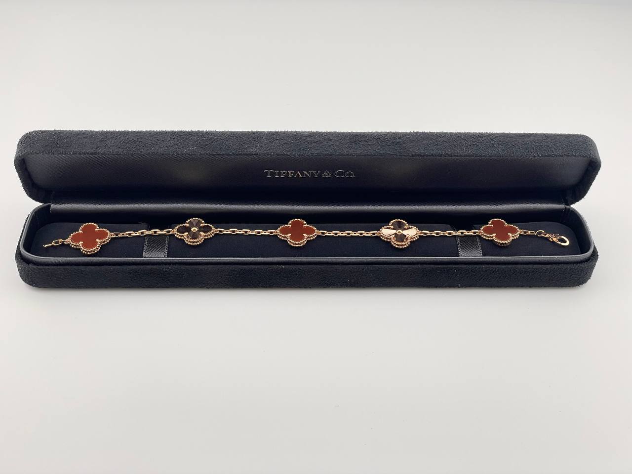 Элегантный браслет Van Cleef Alhambra из золота 750 пробы с изысканными вставками из сердолика.