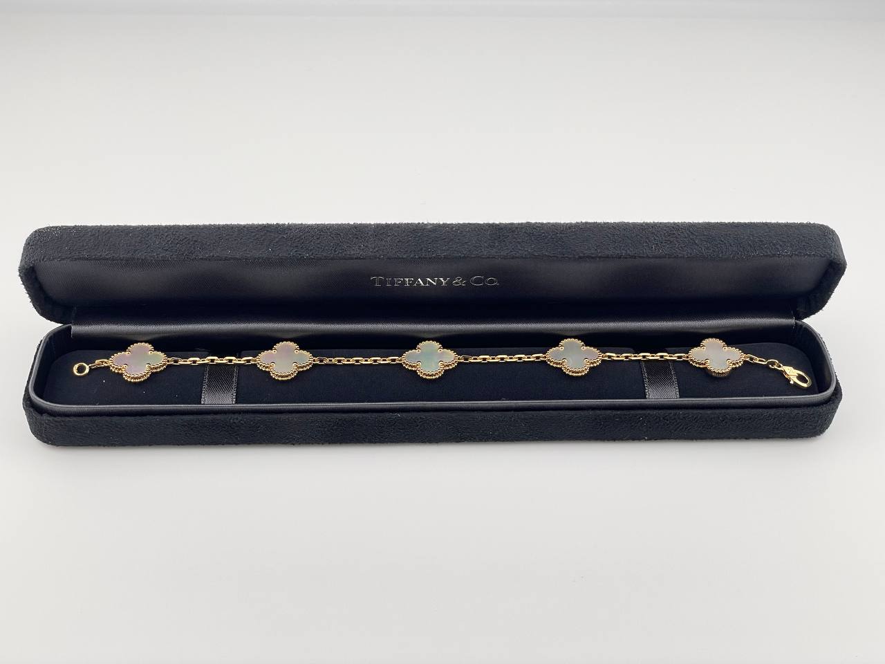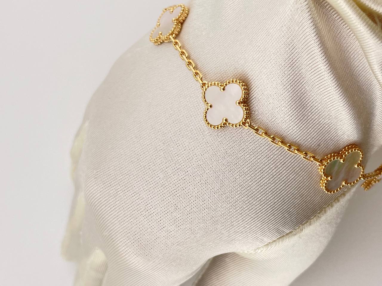 Изящный браслет Van Cleef Alhambra из золота 750 пробы, украшенный перламутром. Культовый дизайн для вашего неповторимого образа.