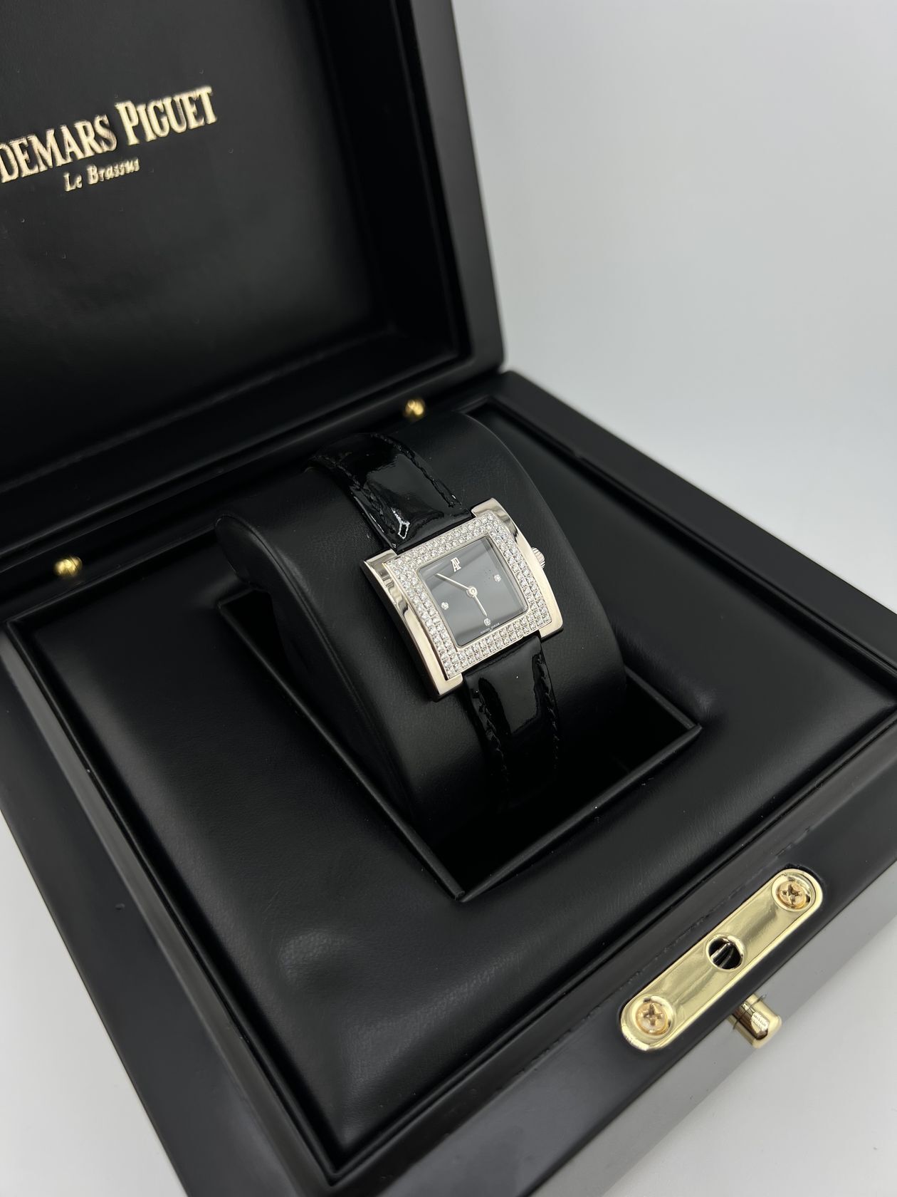 Элегантные женские часы Audemars Piguet Lady Diamond в корпусе из белого золота диаметром 27 мм. Модель оснащена надежным кварцевым механизмом и дополнена изысканным кожаным ремешком. Идеальный выбор для утонченного стиля.