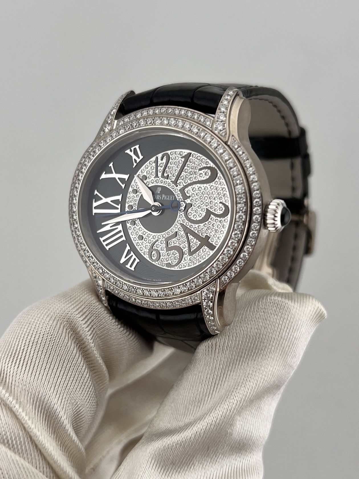 Изысканные швейцарские часы Audemars Piguet Millenary. Корпус из белого золота диаметром 38,5 мм, оснащенный надежным механизмом с автоподзаводом. Дополнены элегантным ремешком из кожи аллигатора. REF: 77302BC