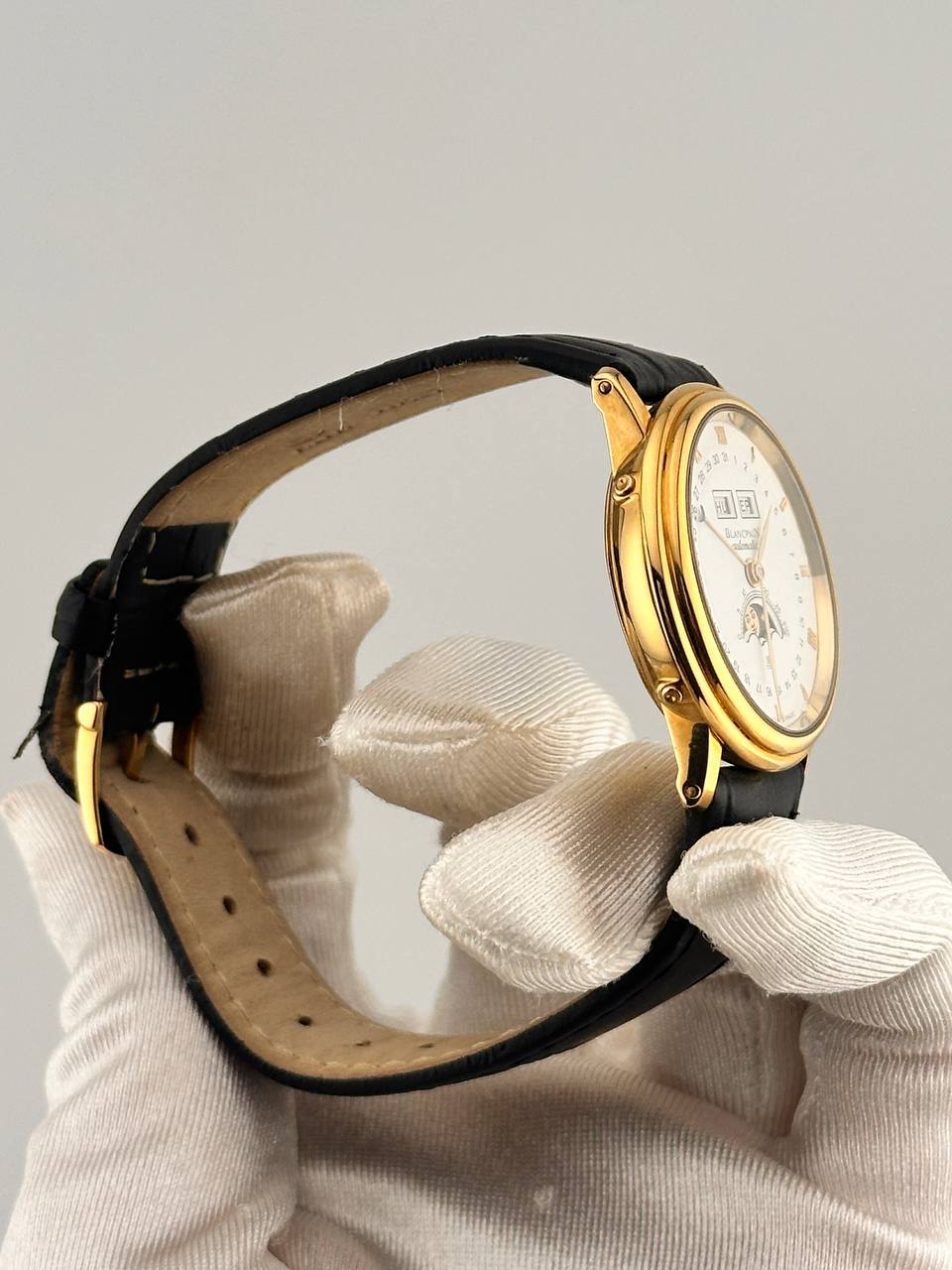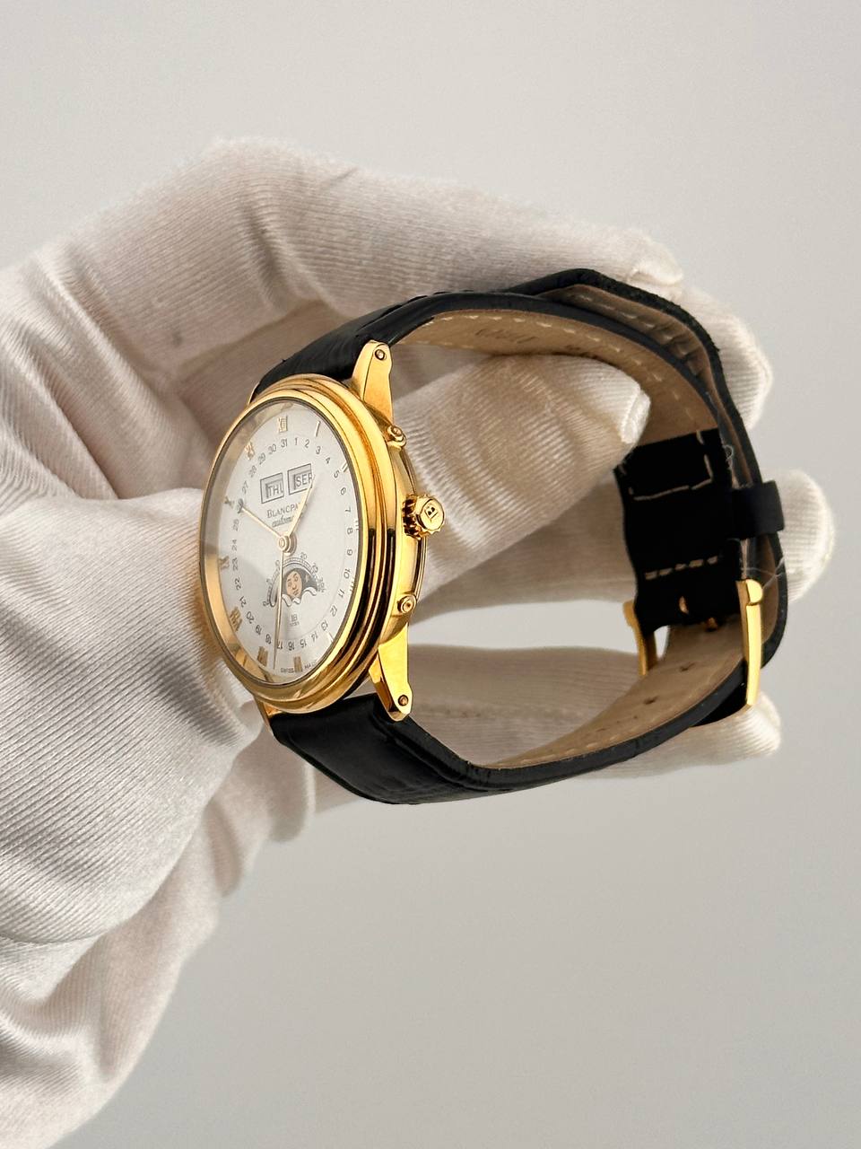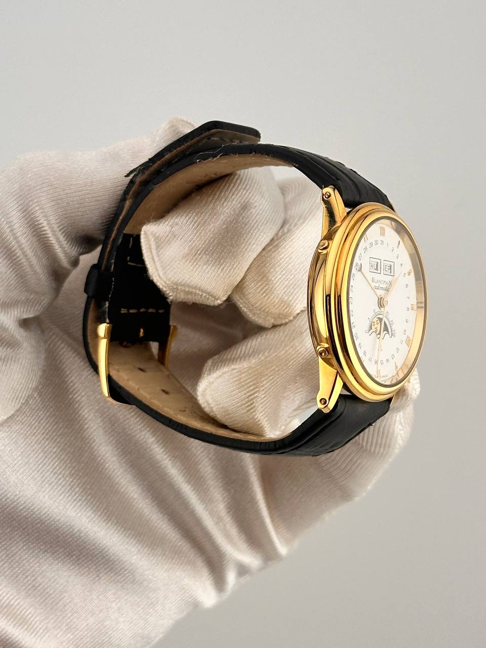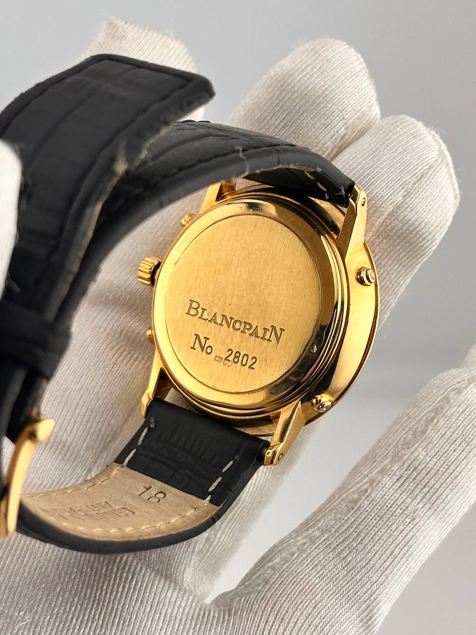 Швейцарские часы Blancpain Villeret в корпусе из Золота 750 пробы. Классическая модель диаметром 34 мм, оснащенная механизмом с автоподзаводом. Элегантный кожаный ремешок подчеркивает утонченный стиль. REF 6595-1418F.