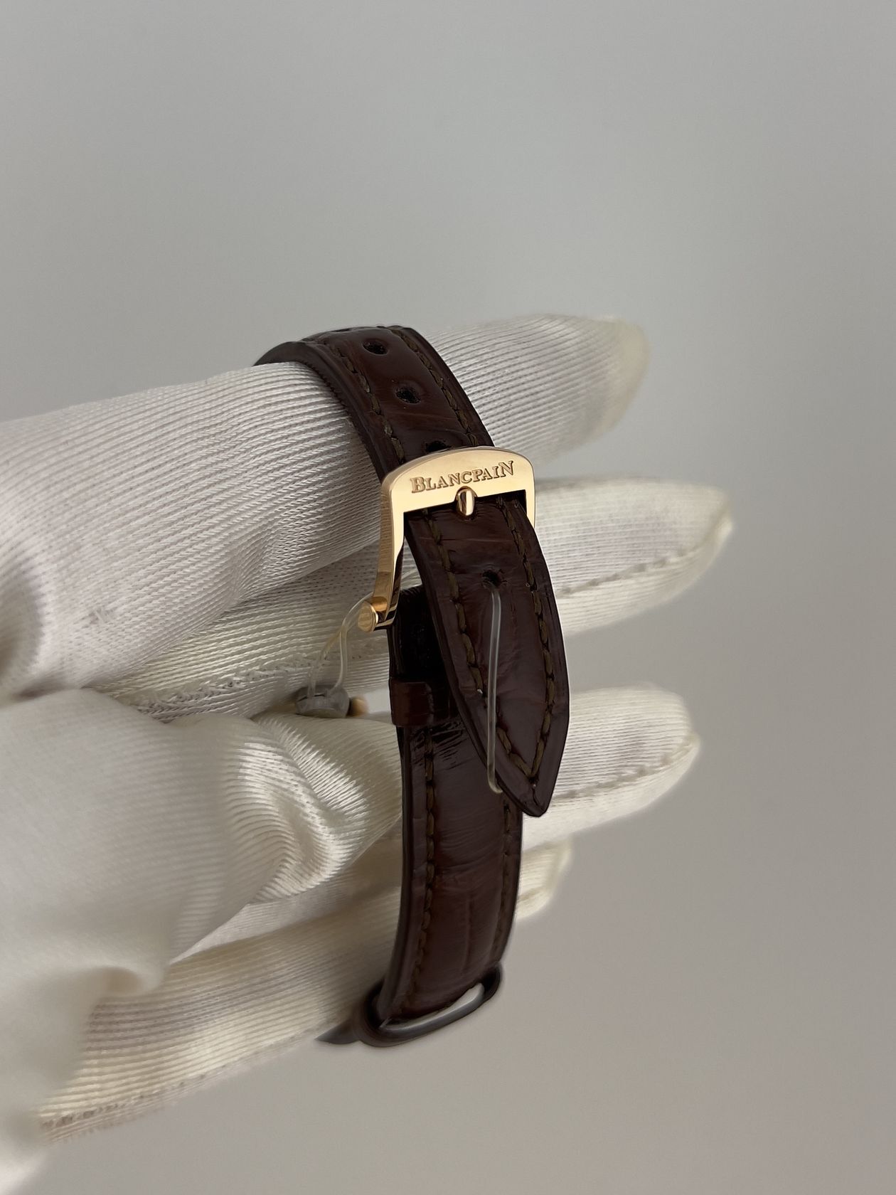 Элегантные часы Blancpain Villeret в корпусе из золота диаметром 29.5 мм. Оснащены надежным механизмом с автоподзаводом и дополнены изысканным ремешком из кожи аллигатора.