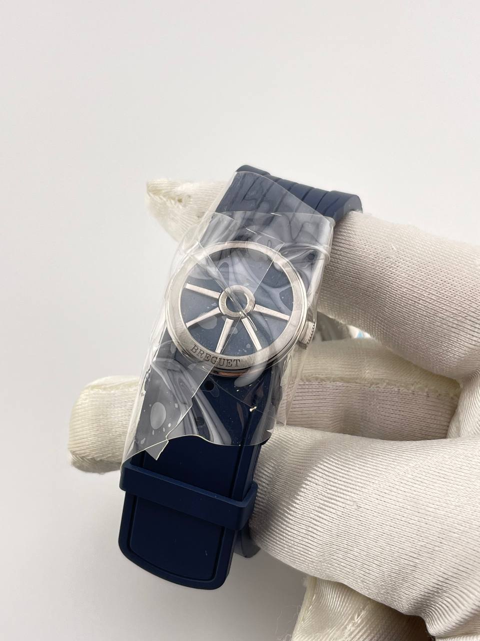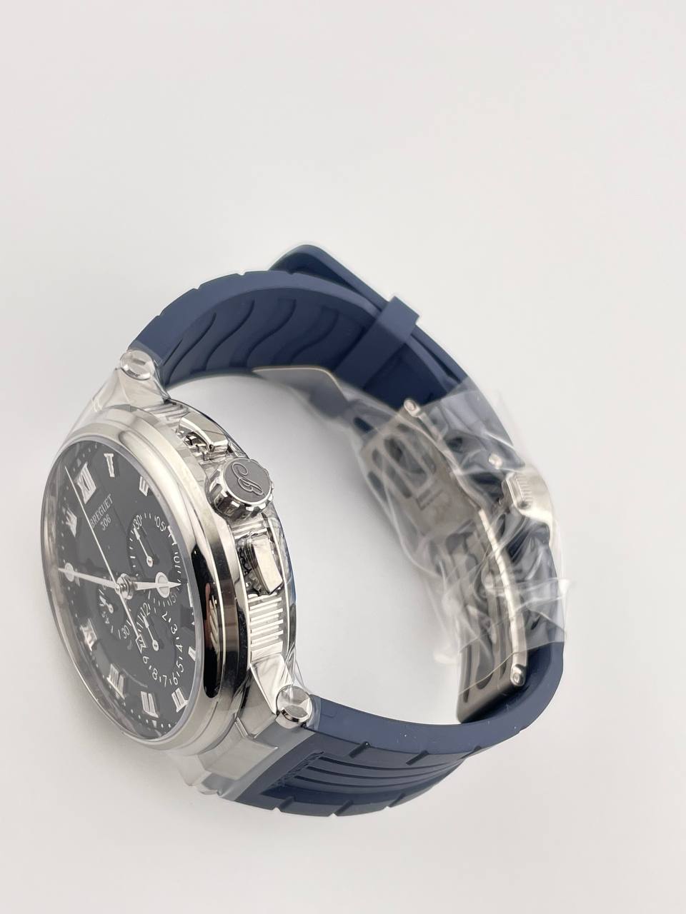 Элегантный хронограф Breguet (Ref. 5527) с надежным автоматическим механизмом. Корпус диаметром 42.3 мм выполнен из легкого титана, дополнен каучуковым ремешком для современного и спортивного стиля.