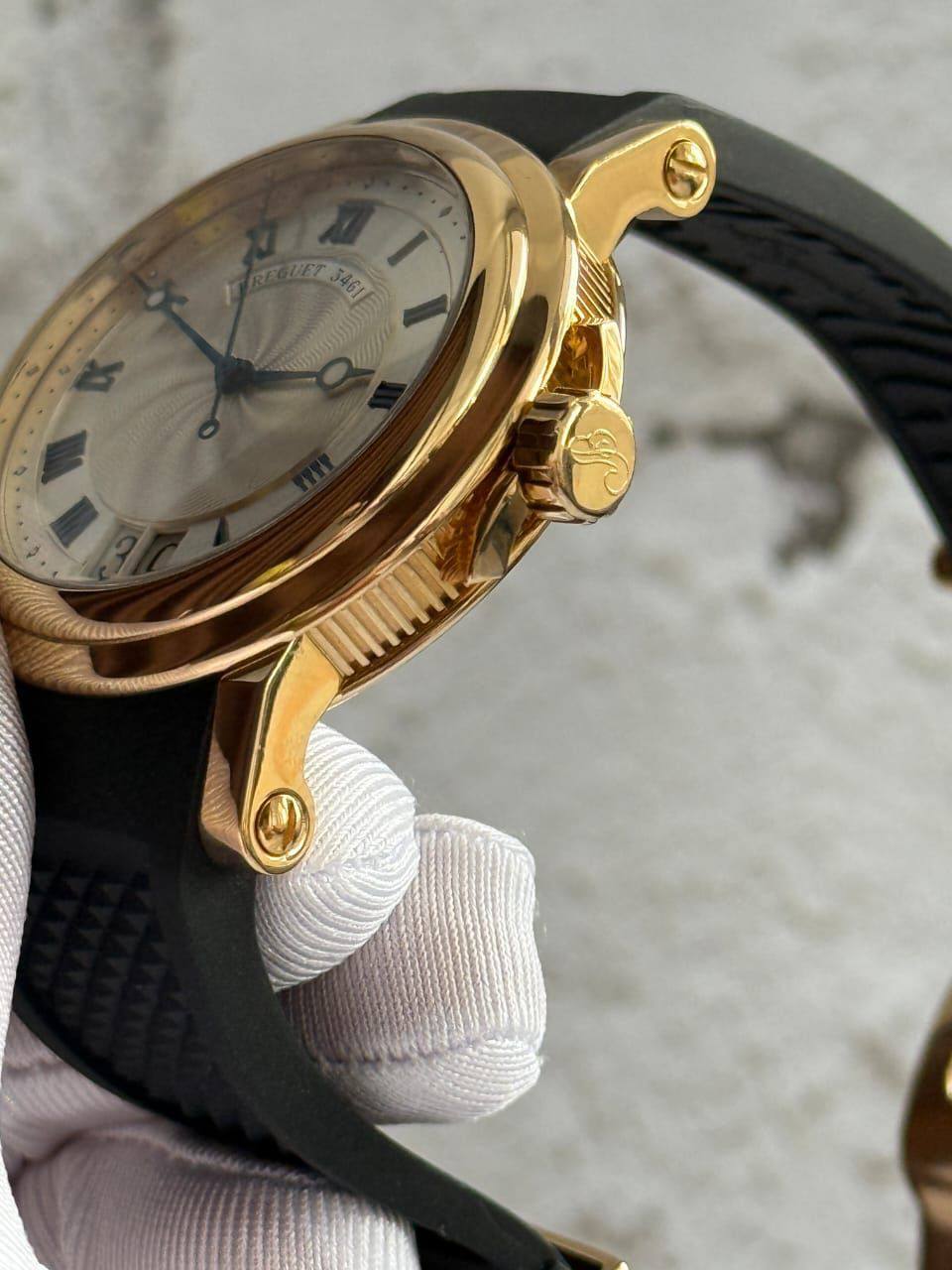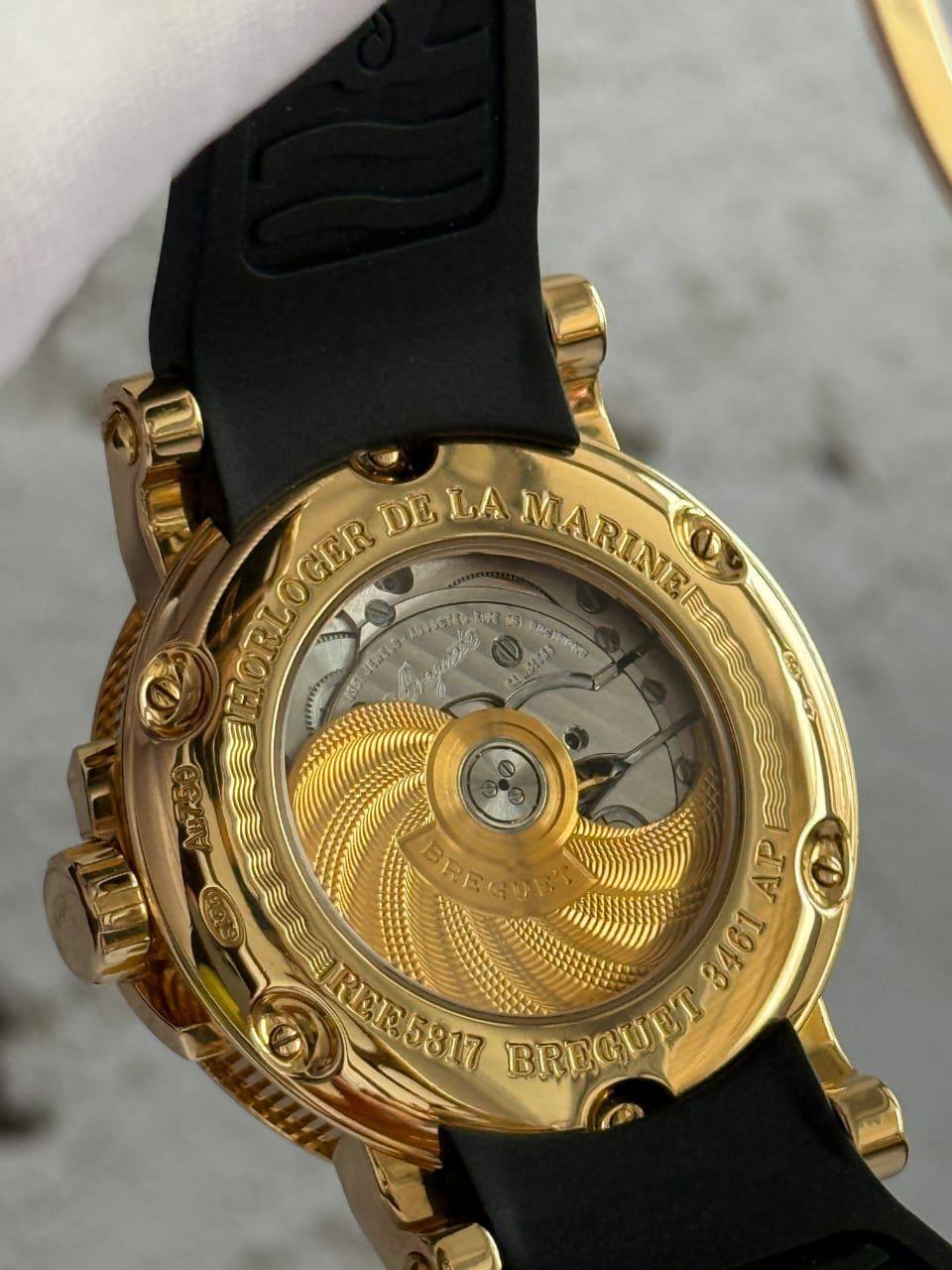 Breguet Marine (Ref. 5817) – элегантные спортивные часы в корпусе из нержавеющей стали (39 мм). Оснащены автоматическим механизмом с функцией «Большая дата» и дополнены каучуковым ремешком. Водонепроницаемость 100 м. Идеальный выбор для тех, кто ценит классику и практичность.