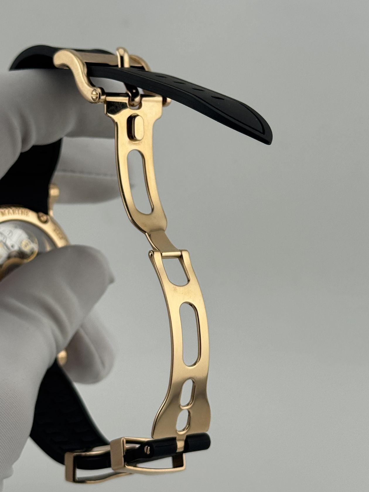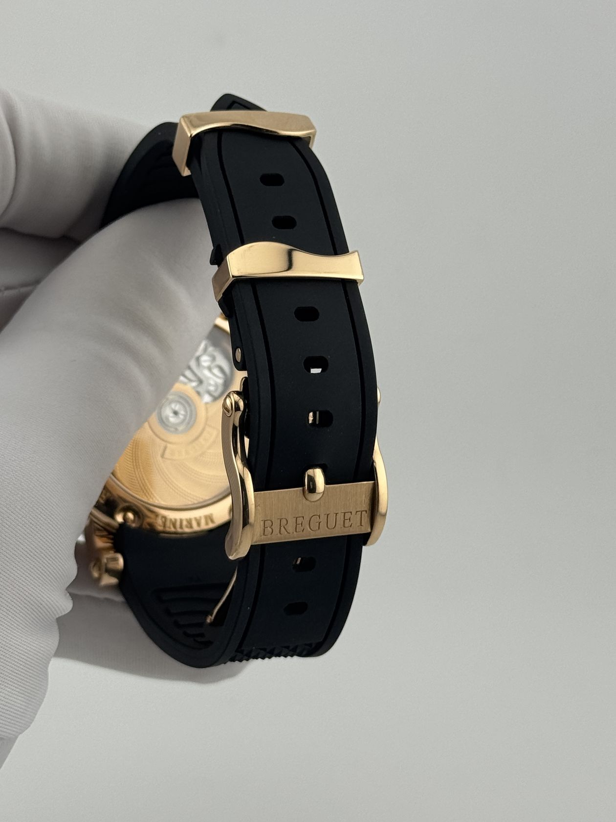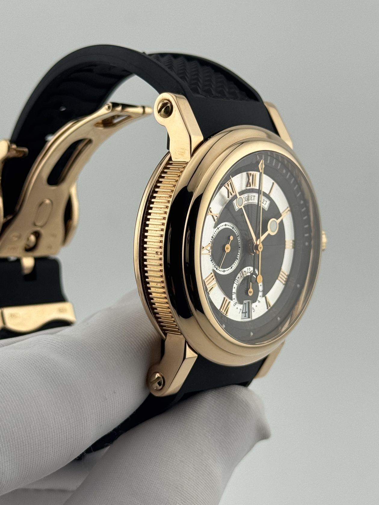 Элегантный хронограф Breguet Marine Chronograph (Ref. 5827) в корпусе из золота, диаметр 42 мм. Часы оснащены надежным автоматическим механизмом и дополнены стильным каучуковым ремешком. Идеальное сочетание морской классики и спортивной элегантности.