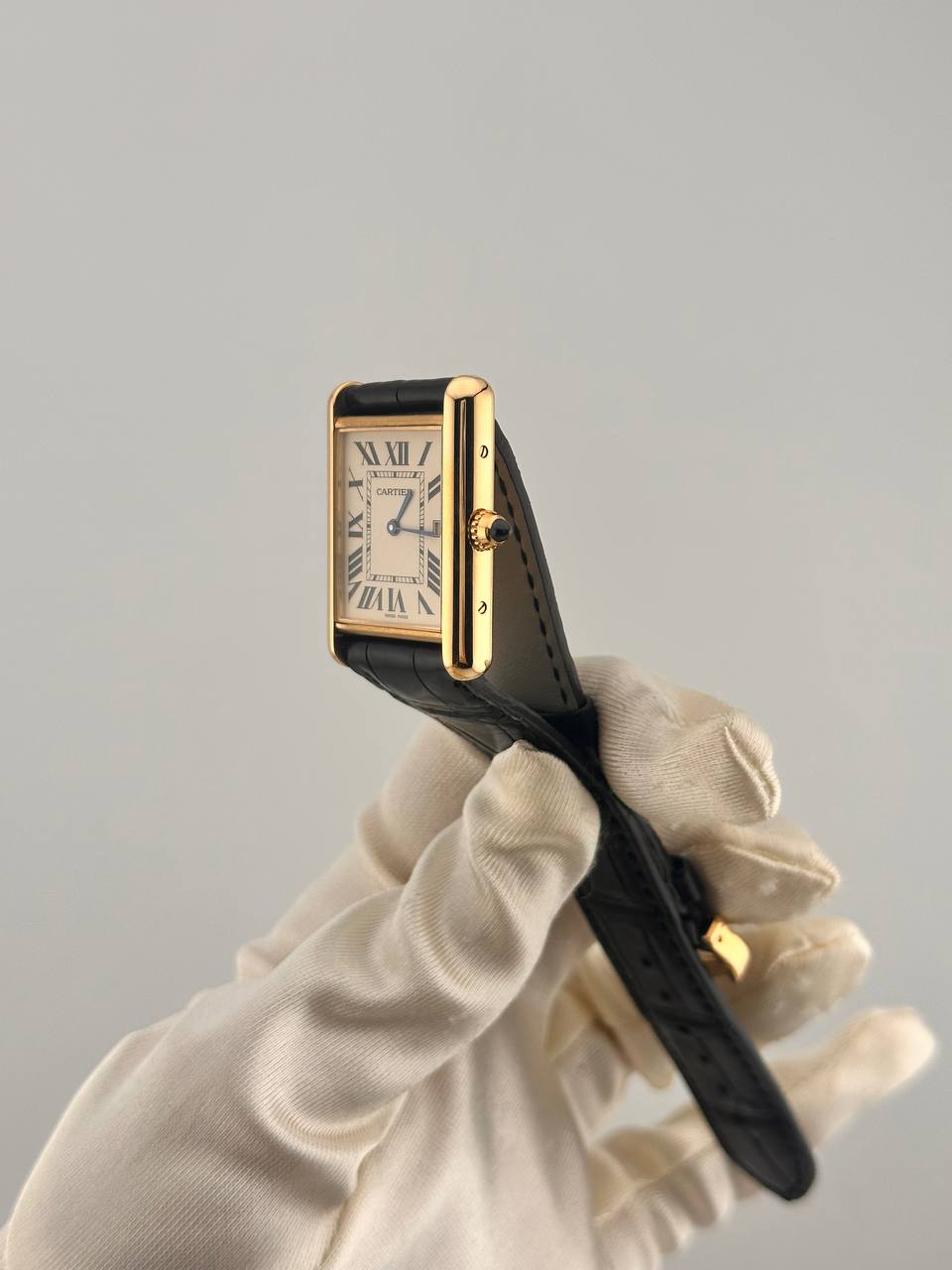 Культовые часы Cartier Tank (Ref. W1529856) – воплощение классической элегантности. Корпус 25 x 33 мм из драгоценного золота с кварцевым механизмом. Модель дополнена изысканным кожаным ремешком.
