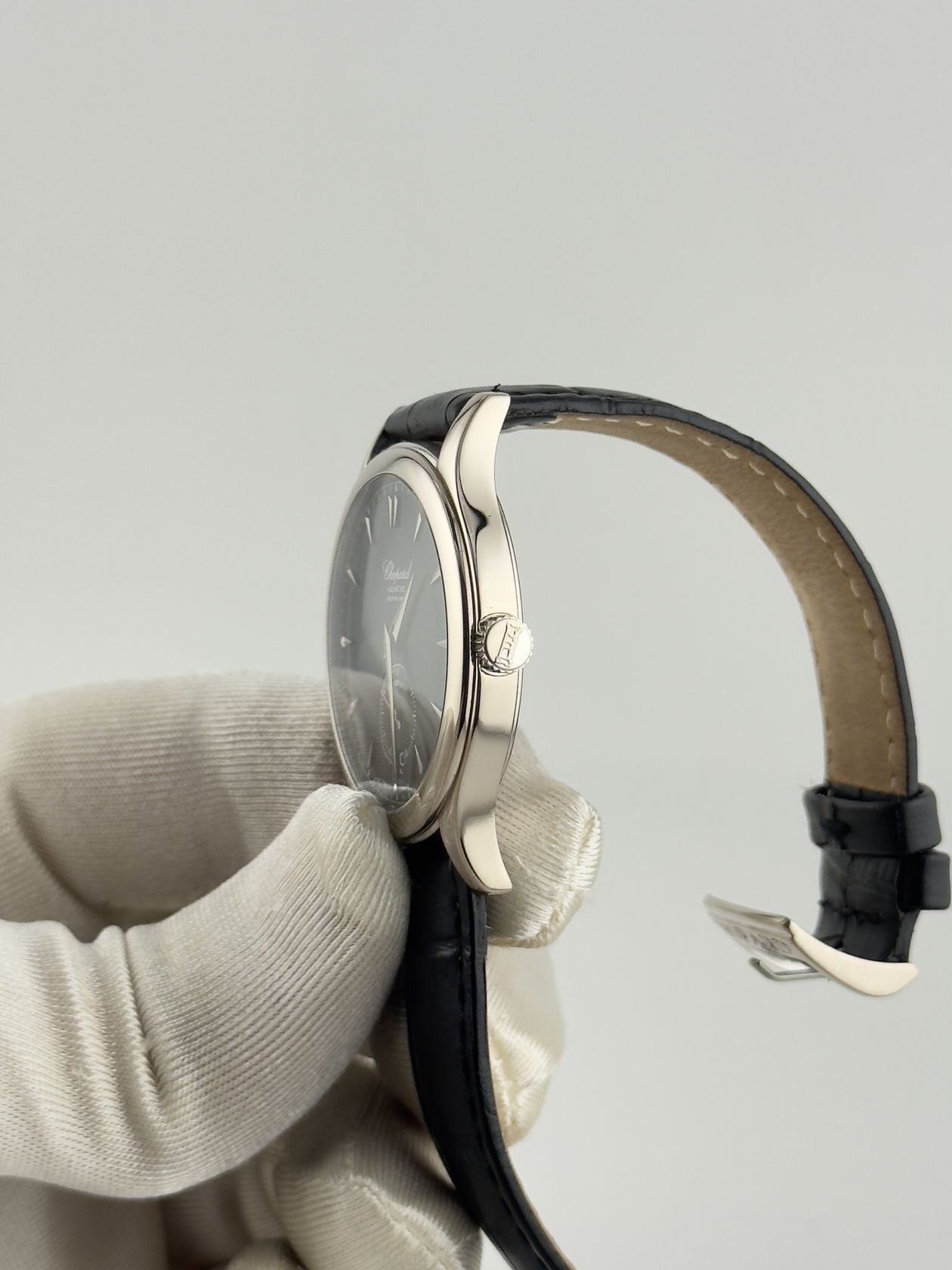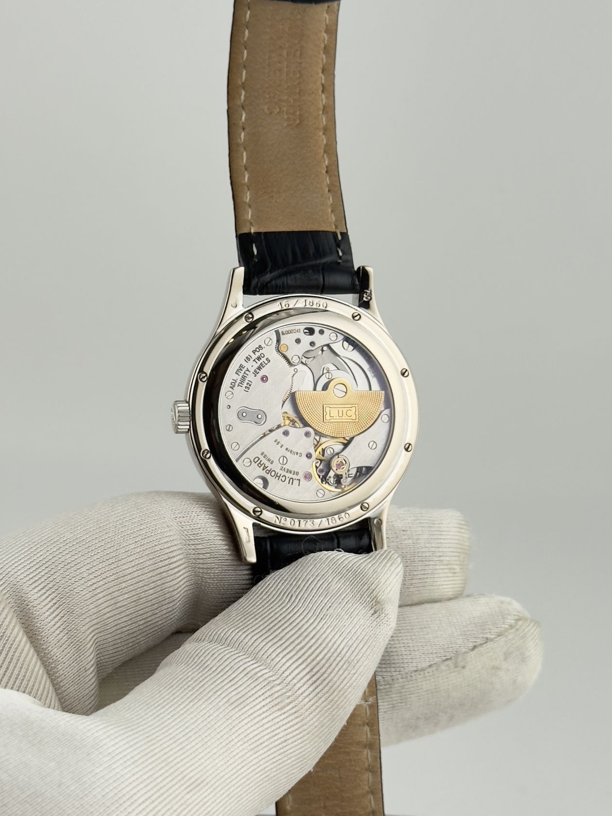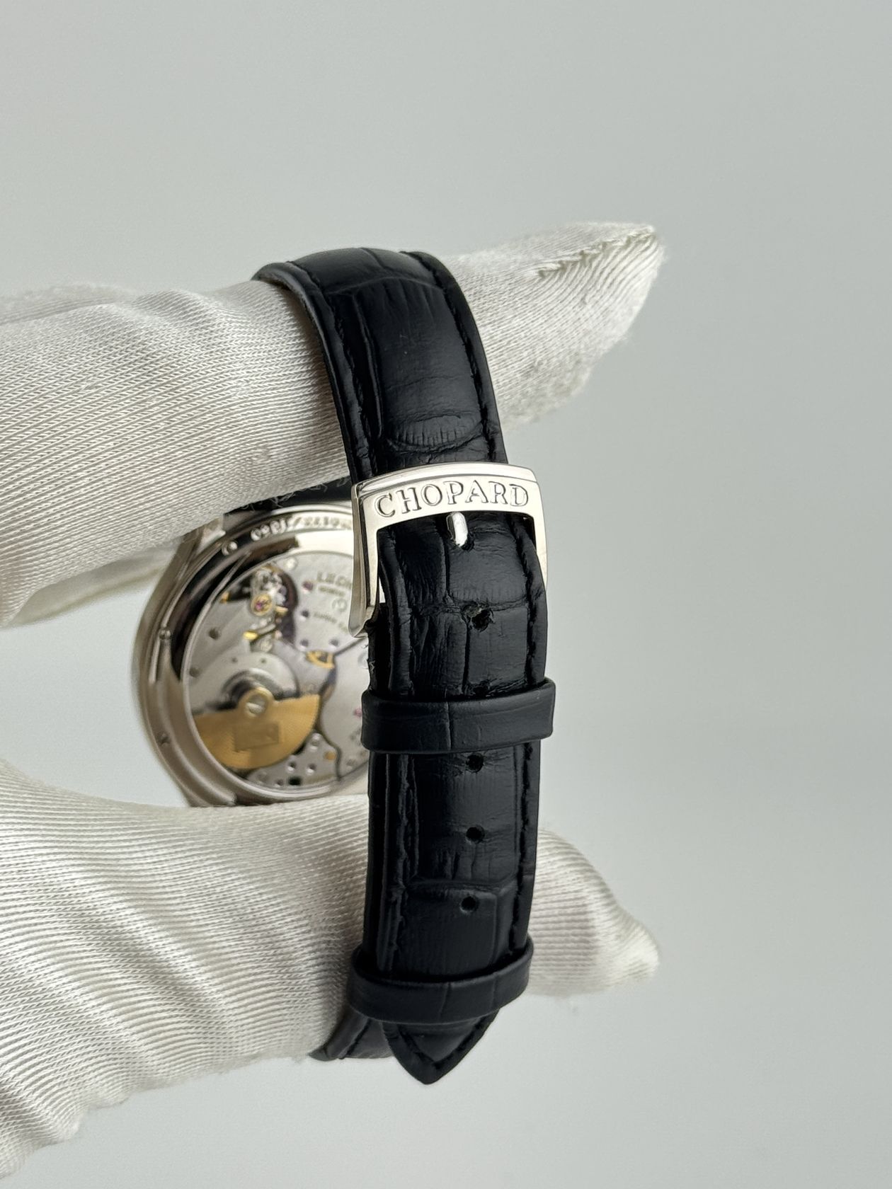 Изящные часы Chopard Classique Depuis 1860 (Ref. 16/1860) в корпусе из белого золота 750 пробы, диаметром 36 мм. Модель оснащена надежным механизмом с автоподзаводом и дополнена элегантным кожаным ремешком, представляя собой образец классического швейцарского часового искусства.