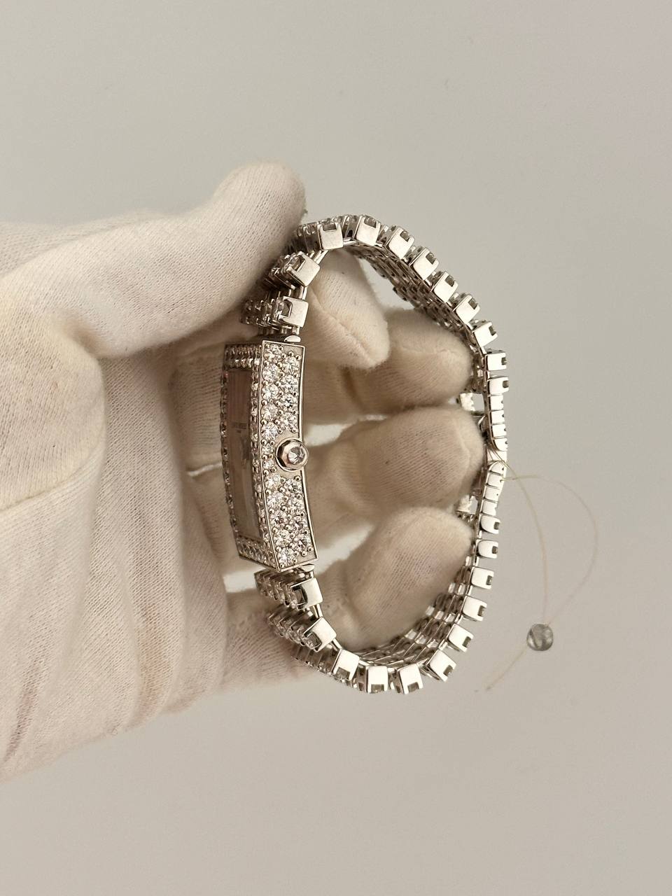 Изысканные швейцарские часы с кварцевым механизмом. Элегантный корпус (24 х 31 мм) и браслет выполнены из золота и украшены ослепительными бриллиантами. Идеальный выбор для тех, кто ценит роскошь и точность.