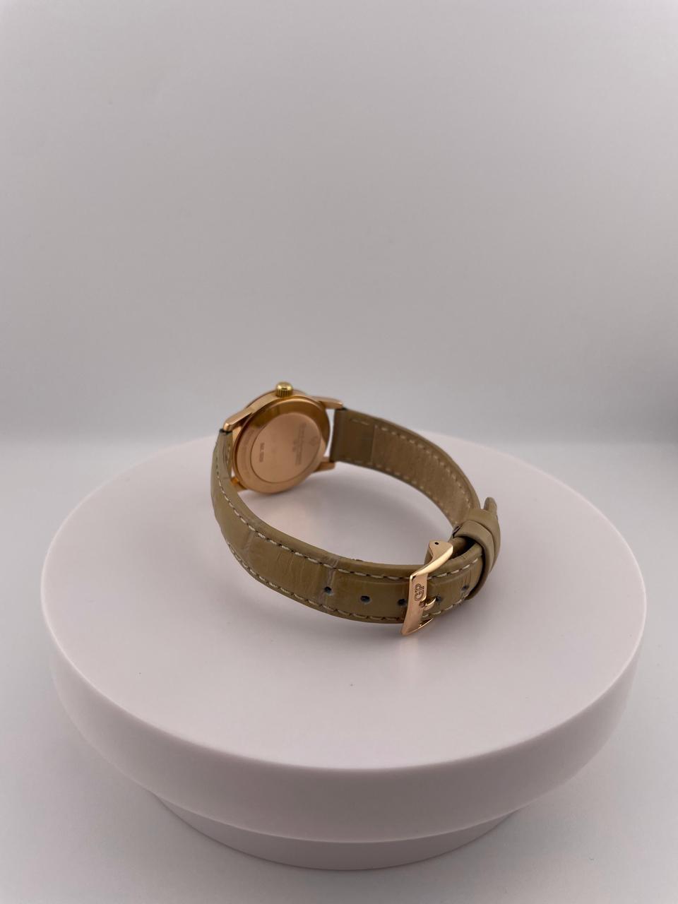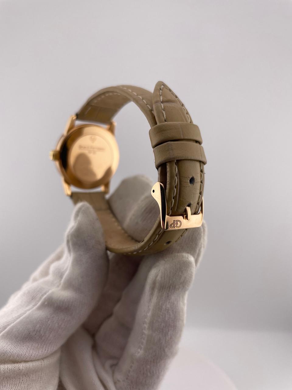 Элегантные швейцарские часы Girard-Perregaux GP 90 в корпусе из золота 750 пробы. Модель с автоматическим механизмом, диаметром 28 мм, дополнена классическим кожаным ремешком.