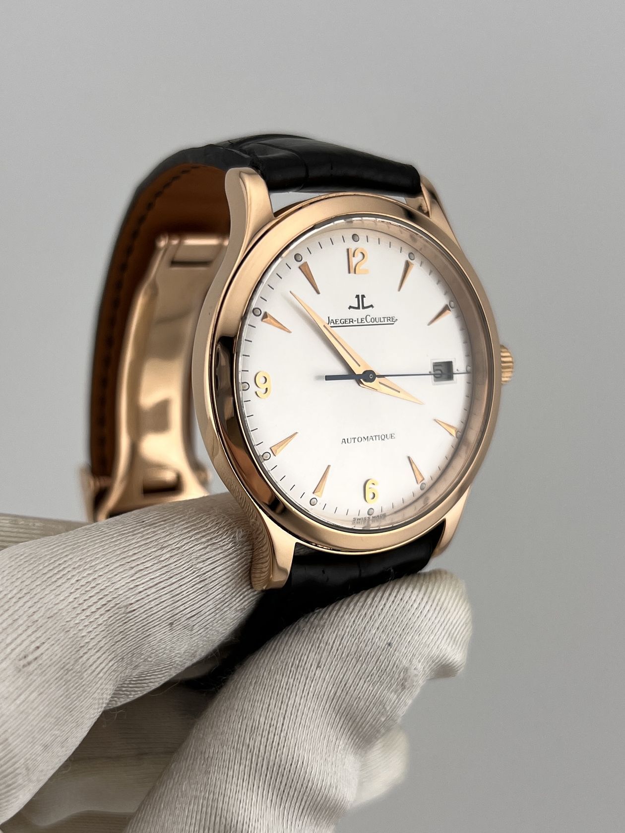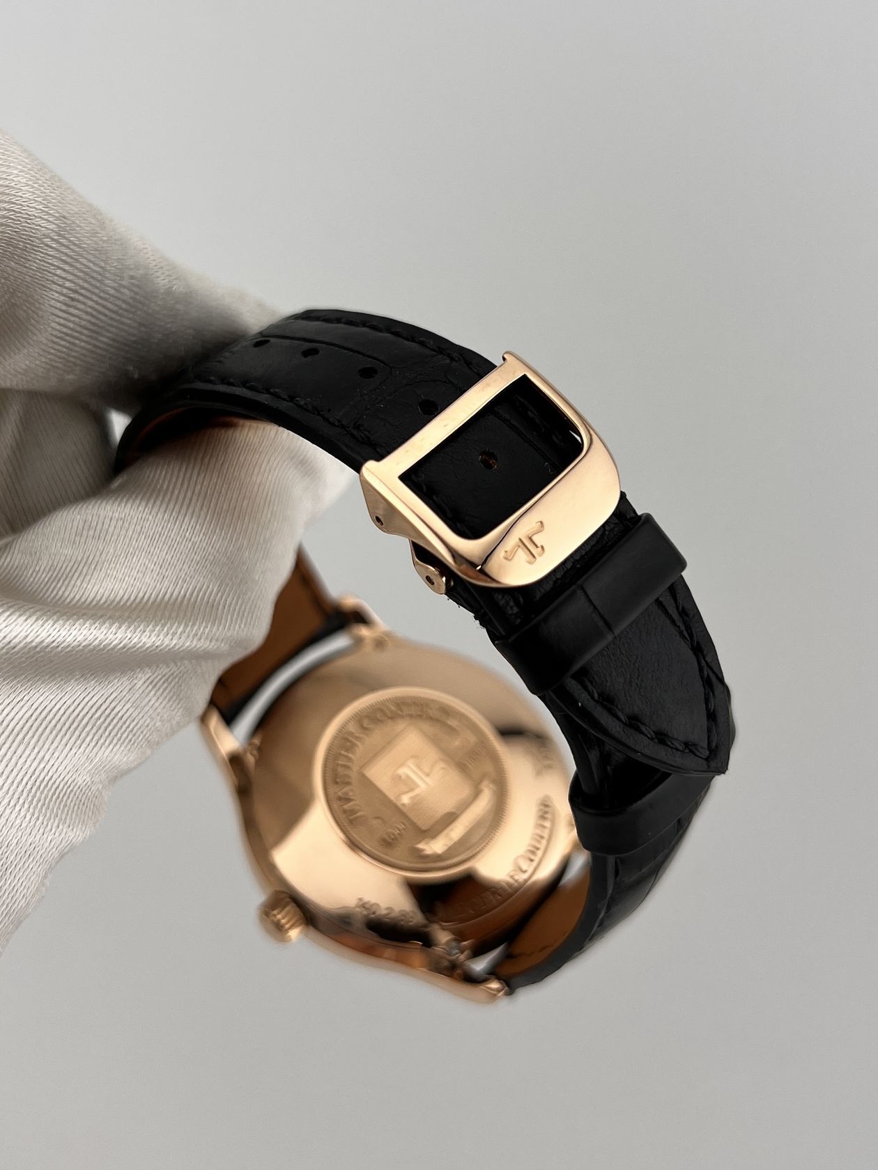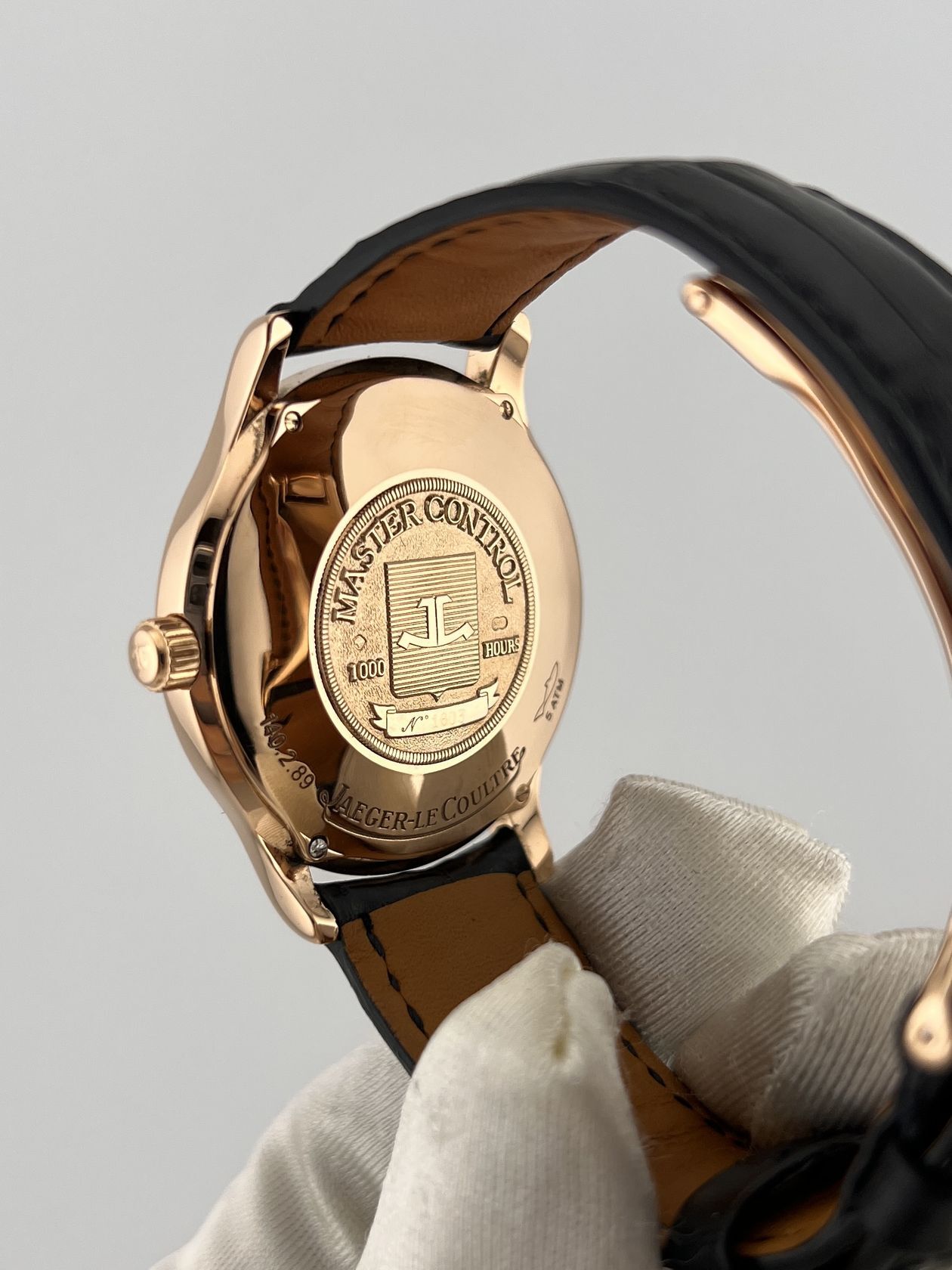 Классические швейцарские часы Jaeger-LeCoultre Master Control в золотом корпусе диаметром 37 мм. Модель оснащена надежным механизмом с автоподзаводом и дополнена элегантным ремешком из кожи аллигатора.