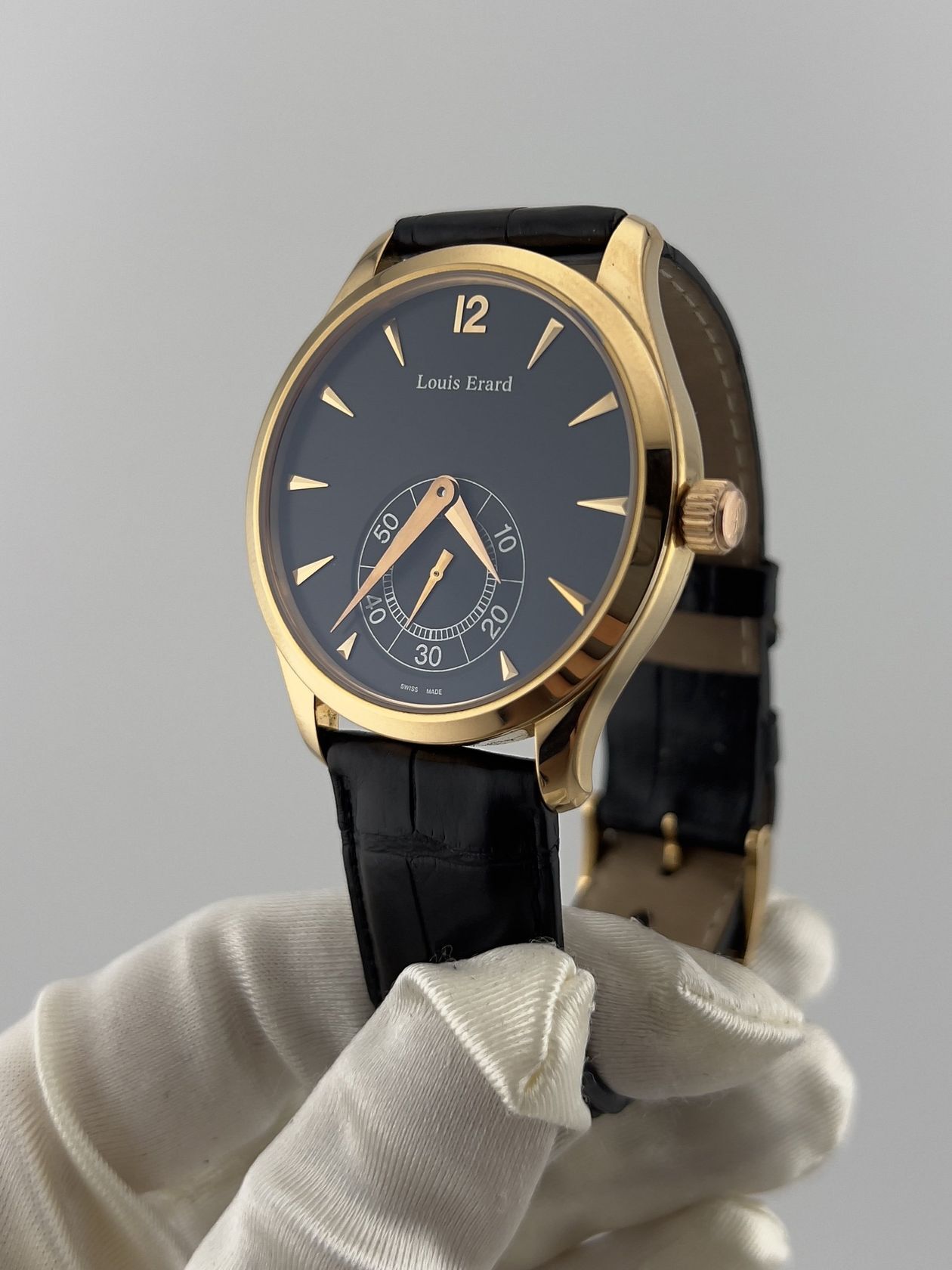 Элегантные швейцарские часы Louis Erard Small Second Classique (Ref: 472070R14) в корпусе из золота 750 пробы. Классический дизайн, надежный автоматический механизм и ремешок из натуральной кожи аллигатора подчеркнут ваш безупречный стиль. Диаметр 40 мм.