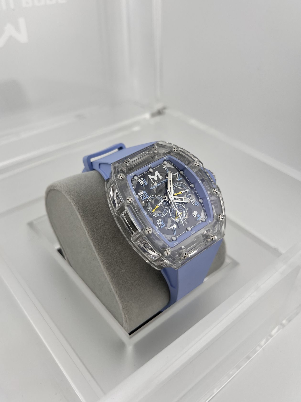Стильные часы Maikou Bode REF MB003-04 с механизмом автоподзавода. Корпус размером 42.5 x 50 мм защищен синтетическим кристаллом. Модель дополнена практичным каучуковым ремешком.