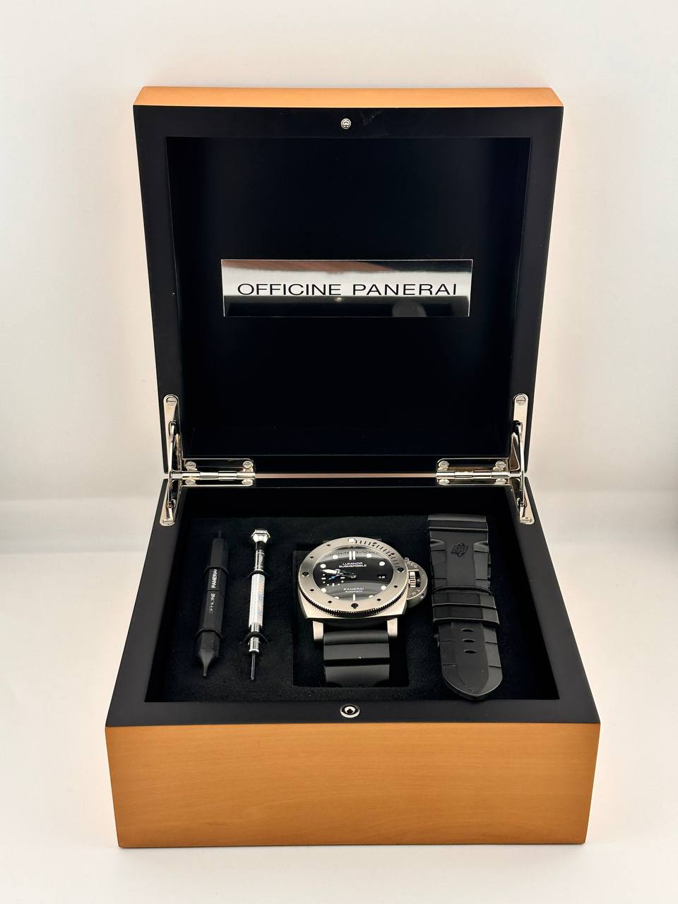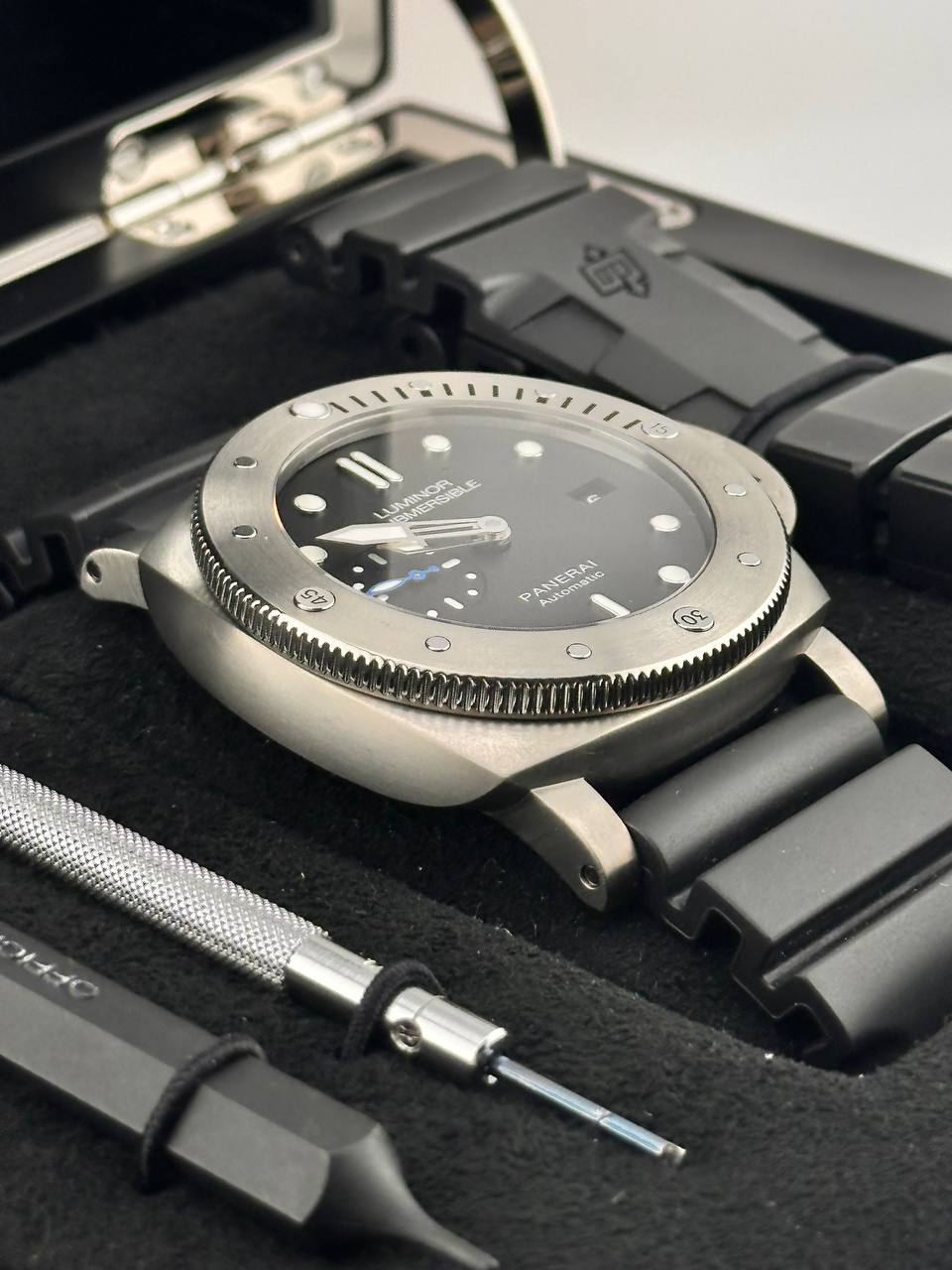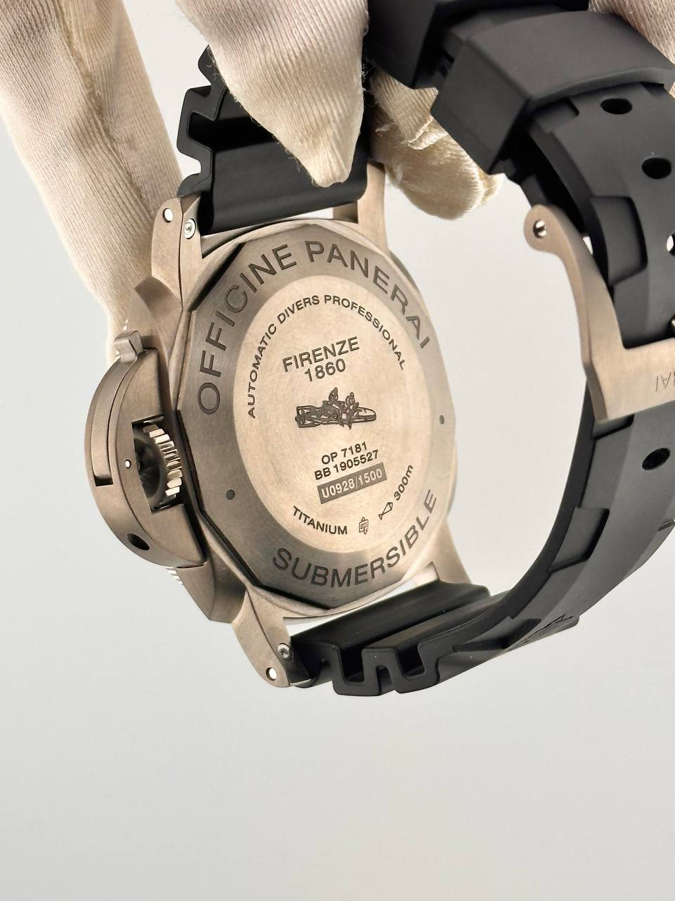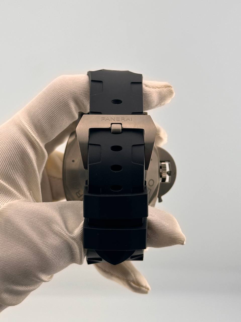 Культовые часы Panerai Luminor (PAM 01305) с надежным автоматическим механизмом. Массивный корпус диаметром 47 мм выполнен из легкого и прочного титана и дополнен каучуковым ремешком, что идеально сочетает фирменный стиль бренда с функциональностью дайверских часов.