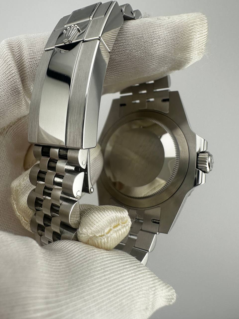Культовые часы Rolex GMT-Master II в стальном корпусе диаметром 40 мм. Оснащены надежным механизмом с автоподзаводом и дополнены элегантным стальным браслетом, представляя собой идеальное сочетание функциональности и стиля.