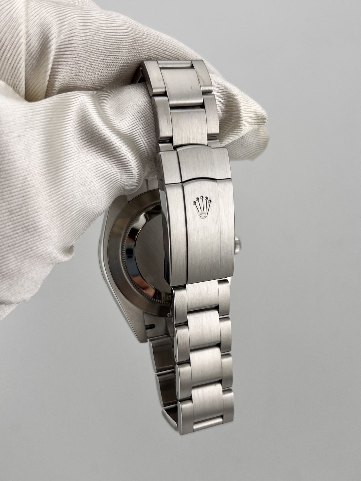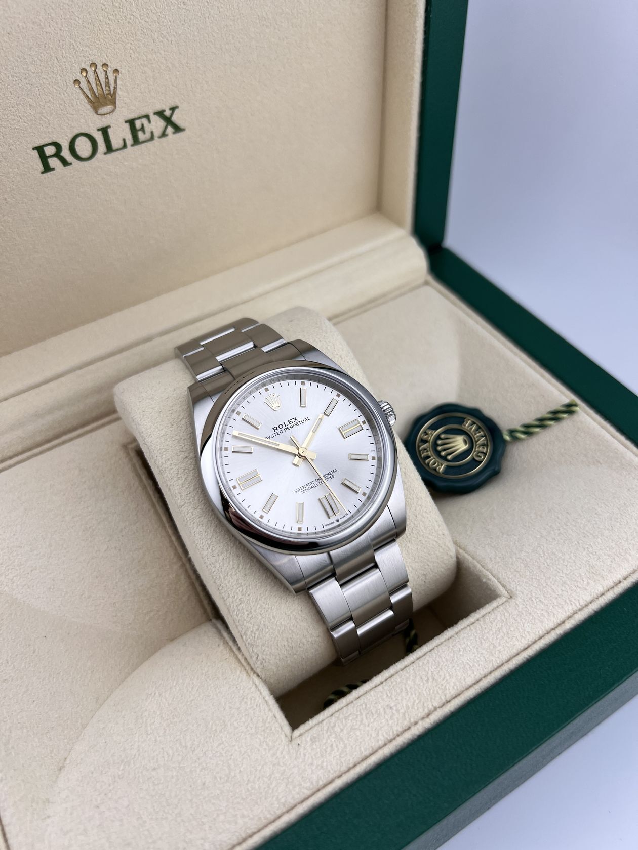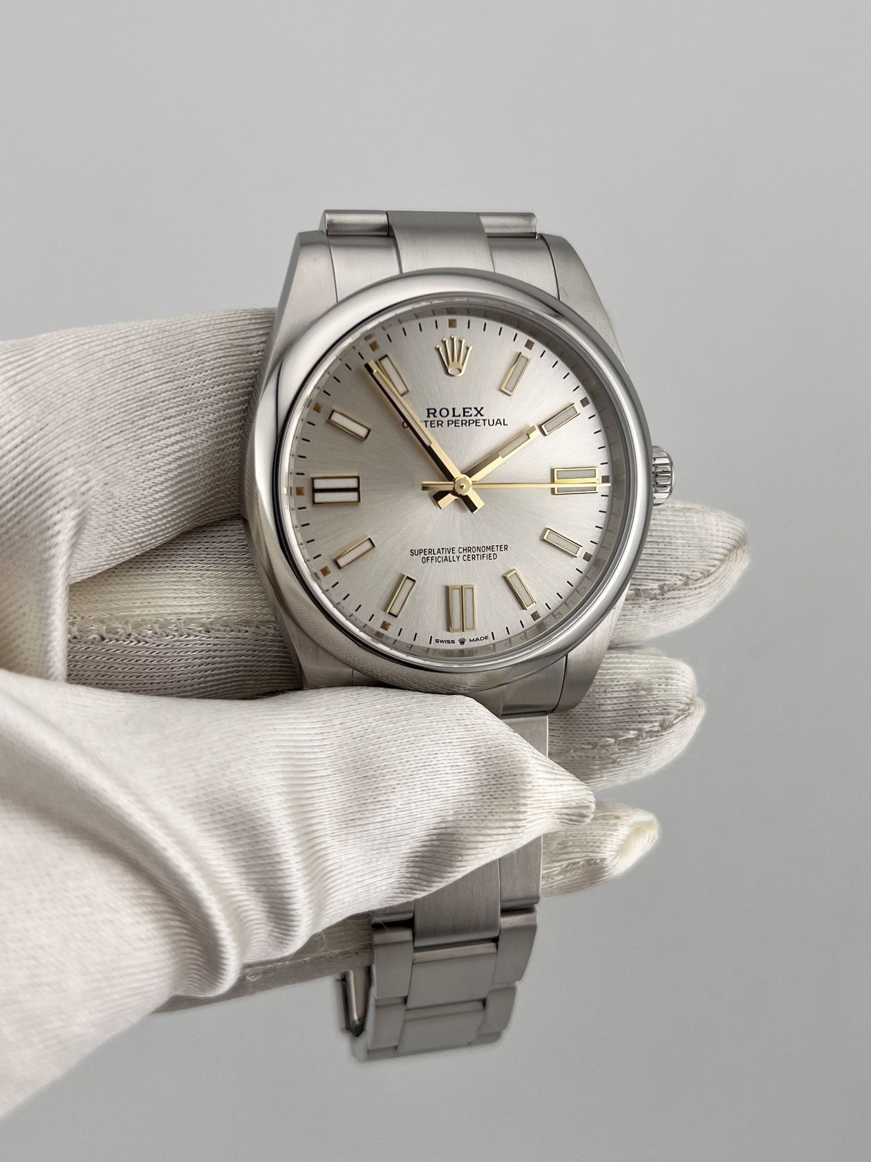 Культовые часы Rolex Oyster Perpetual в стальном корпусе диаметром 41 мм. Оснащены надежным механизмом с автоподзаводом и стальным браслетом. Идеальное сочетание классики и швейцарской надежности.