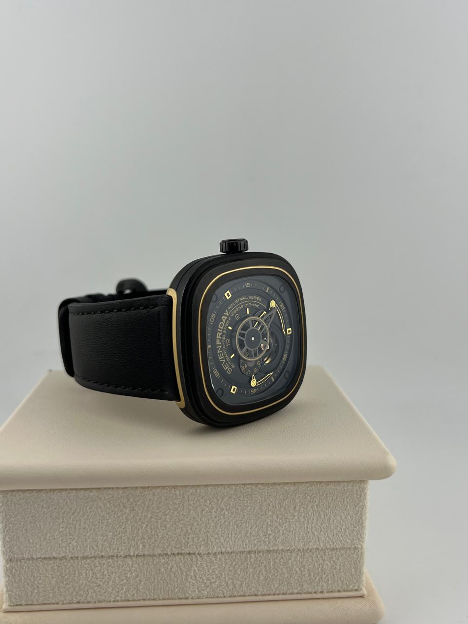 Брутальные часы Sevenfriday с массивным стальным корпусом (47.6 x 47 мм) и надежным механизмом автоподзавода. Модель дополнена стильным кожаным ремешком, идеально подчеркивающим уникальный дизайн.