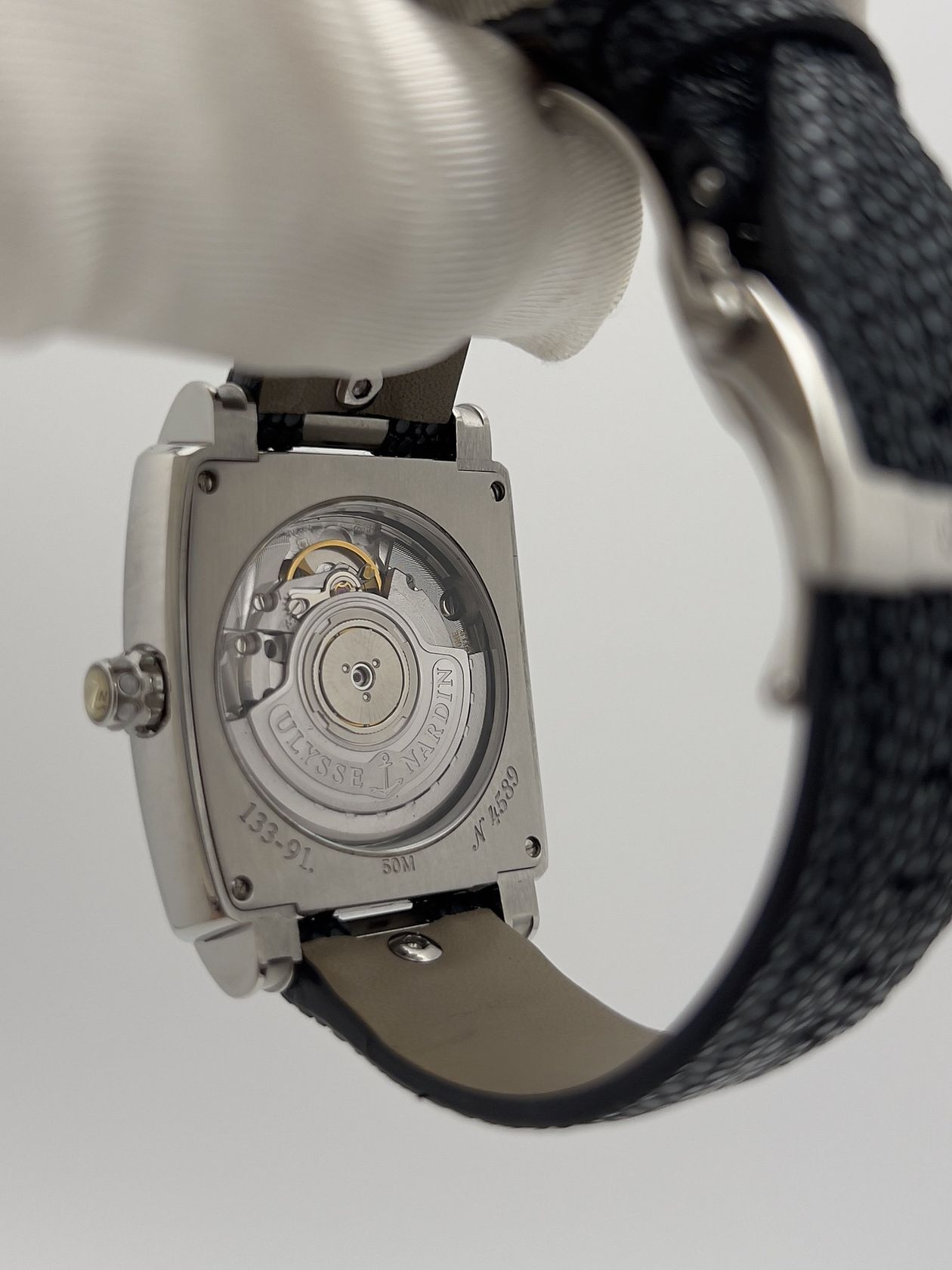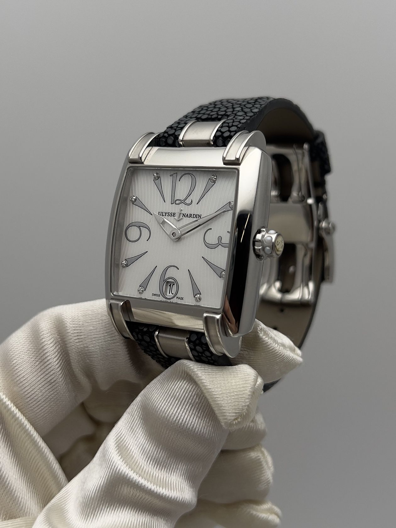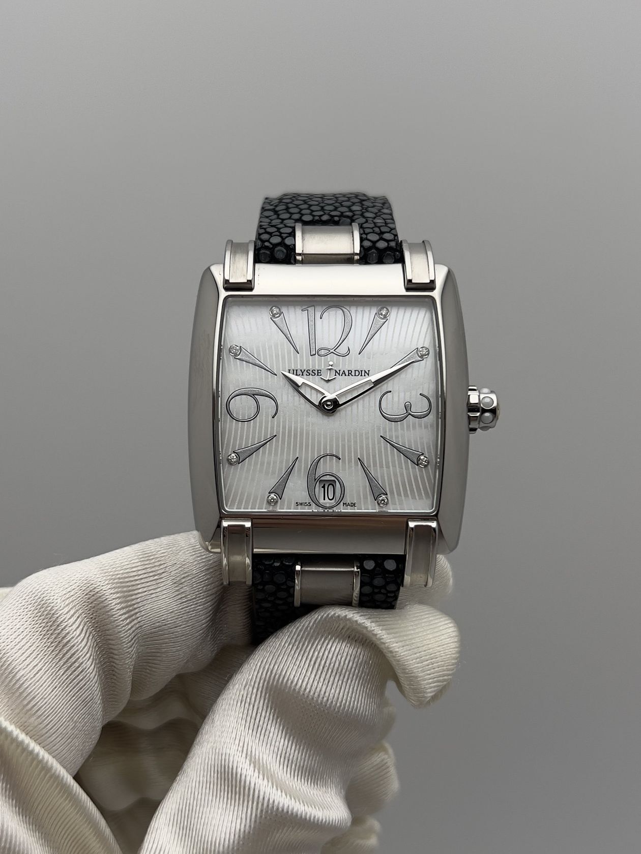 Элегантные женские часы Ulysse Nardin Caprice (Ref. 133-91) в корпусе из стали (34 x 35.4 мм). Оснащены надежным автоматическим механизмом. Изысканный ремешок из кожи ската подчеркивает роскошный стиль этой модели.