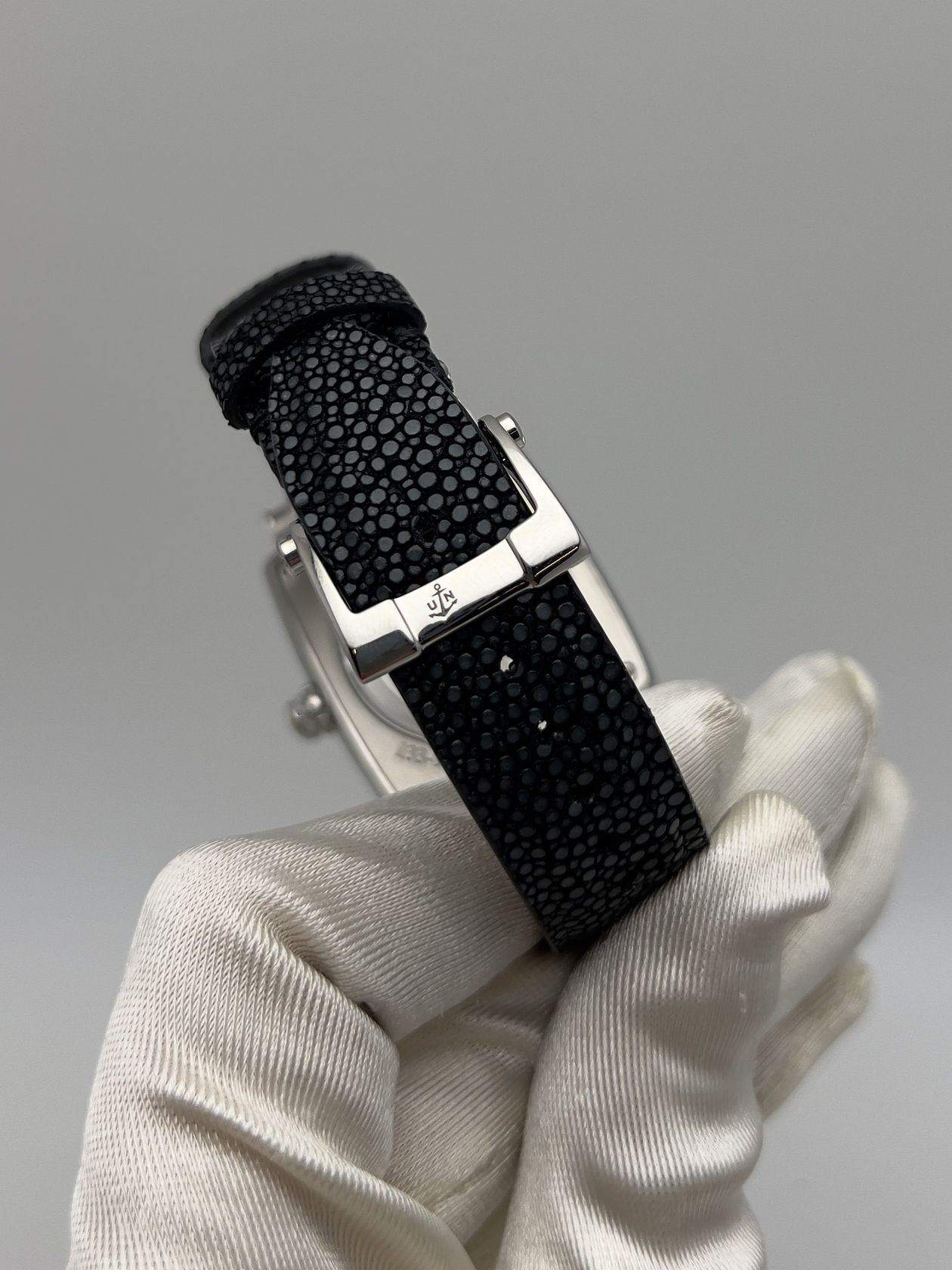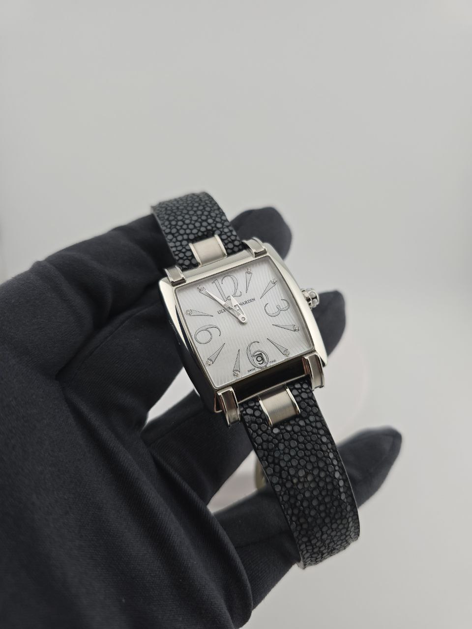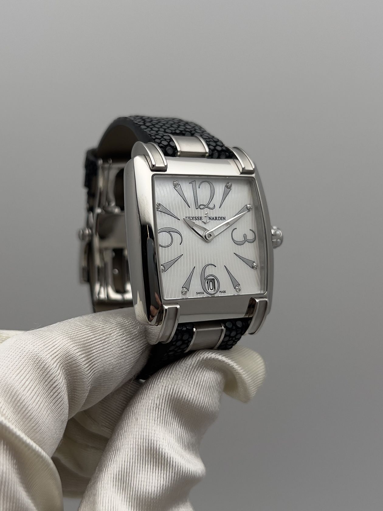 Элегантные женские часы Ulysse Nardin Caprice (Ref. 133-91) в корпусе из стали (34 x 35.4 мм). Оснащены надежным автоматическим механизмом. Изысканный ремешок из кожи ската подчеркивает роскошный стиль этой модели.