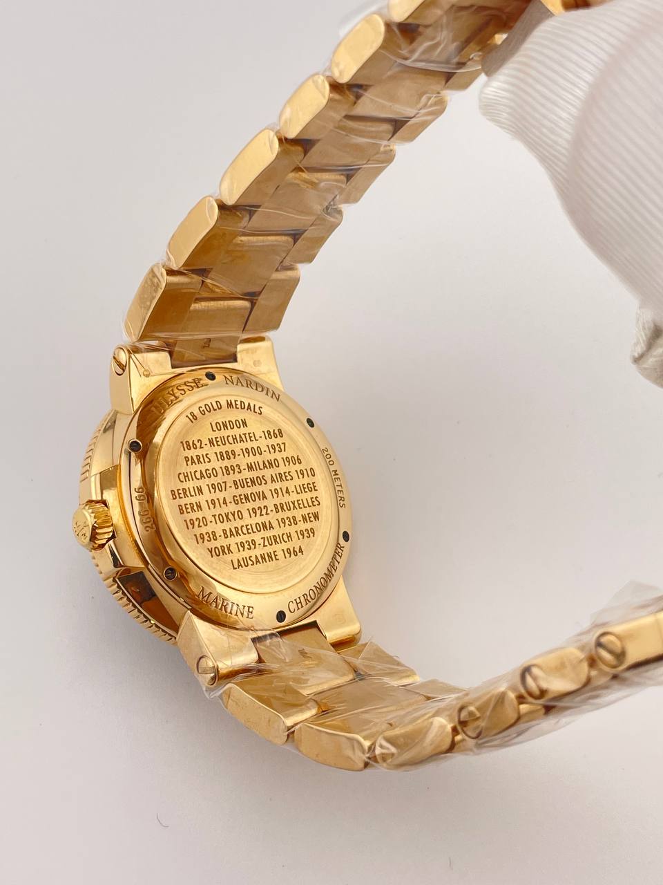 Культовый хронометр Ulysse Nardin Maxi Marine в корпусе и на браслете из золота. Диаметр 41 мм, оснащен надежным механизмом с автоподзаводом, подчеркивает статус и изысканный вкус.