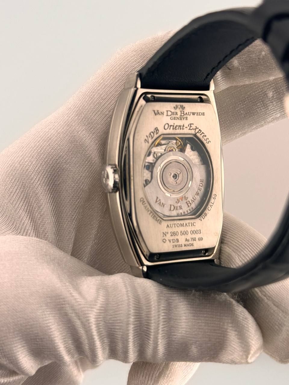 Элегантные золотые часы Van Der Bauwede (32 х 51 мм) с механизмом автоподзавода. Дополнены классическим кожаным ремешком для ценителей роскоши и швейцарского качества.